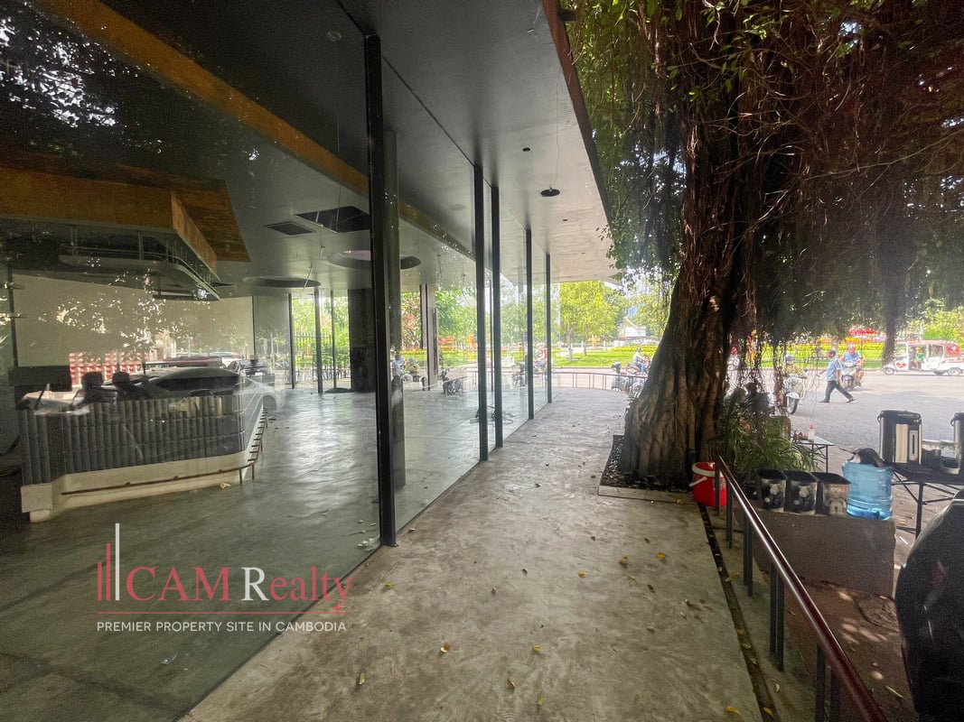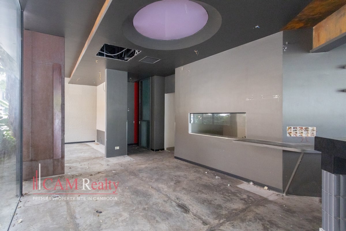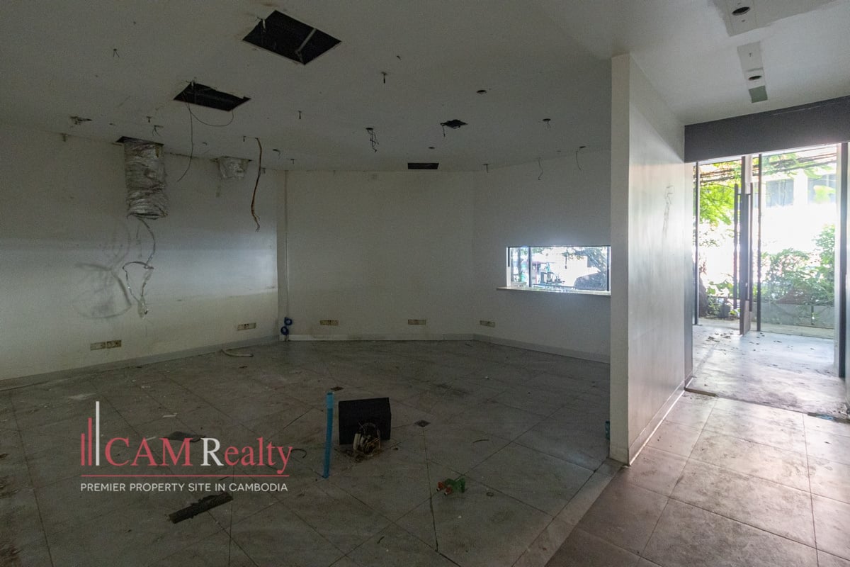 Corner Commercial Space For Rent in Daun Penh. This corner commercial space offers high visibility in the heart of Daun Penh. Located in the busy area of Chakto Mukh, it suits shops or business setups. Its corner position allows great exposure and easy customer access.