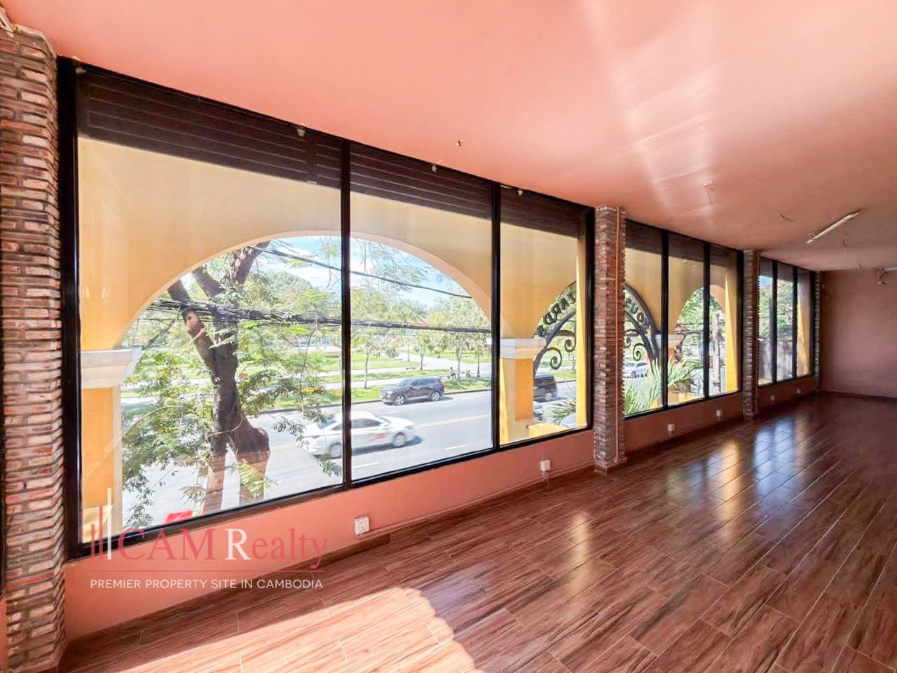 Commercial Space For Rent in Daun Penh along Samdach Sothearos Blvd (3). This commercial space offers high visibility in the heart of Daun Penh. Located in the busy area of Chakto Mukh, it suits shops or business setups. Its corner position allows great exposure and easy customer access.
