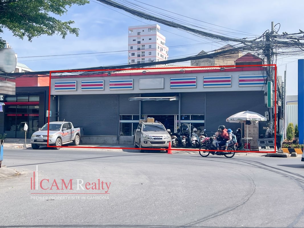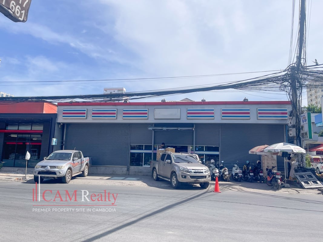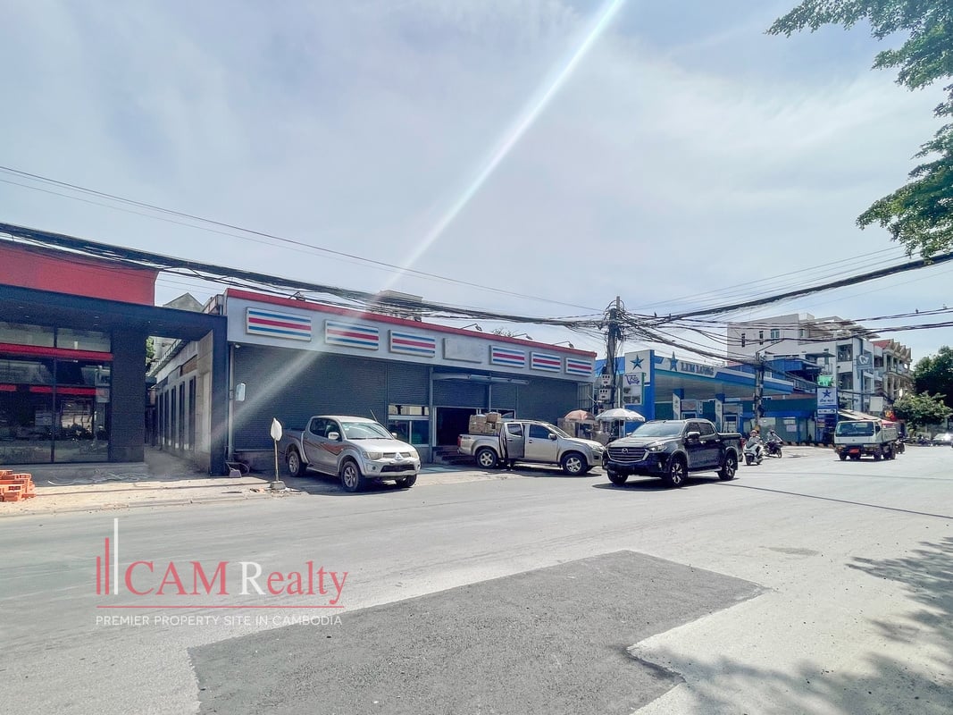 Located in Sangkat Phsar Daeum Thkov, Khan Chamkar Mon, Phnom Penh. The area is surrounded by local businesses, cafes, and residential homes. It has easy access to main roads and transportation routes. A great spot for visibility and customer traffic.