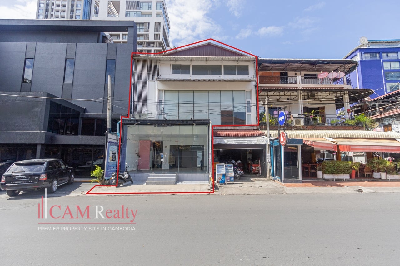 Commercial Villa For Rent in BKK1. This commercial villa suits shops and business operations. The property offers flexible layouts across three floors. Total gross floor area reaches 432 square meters. It supports branding, customer flow, and office functions.