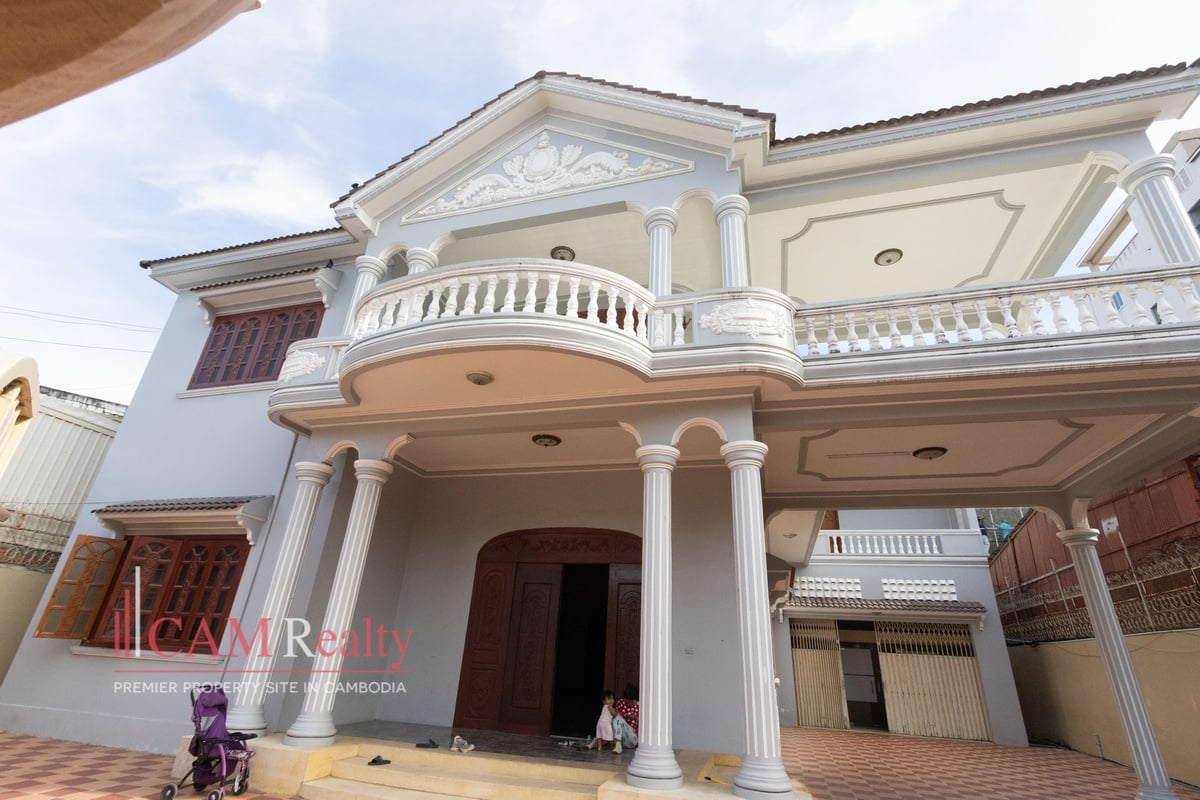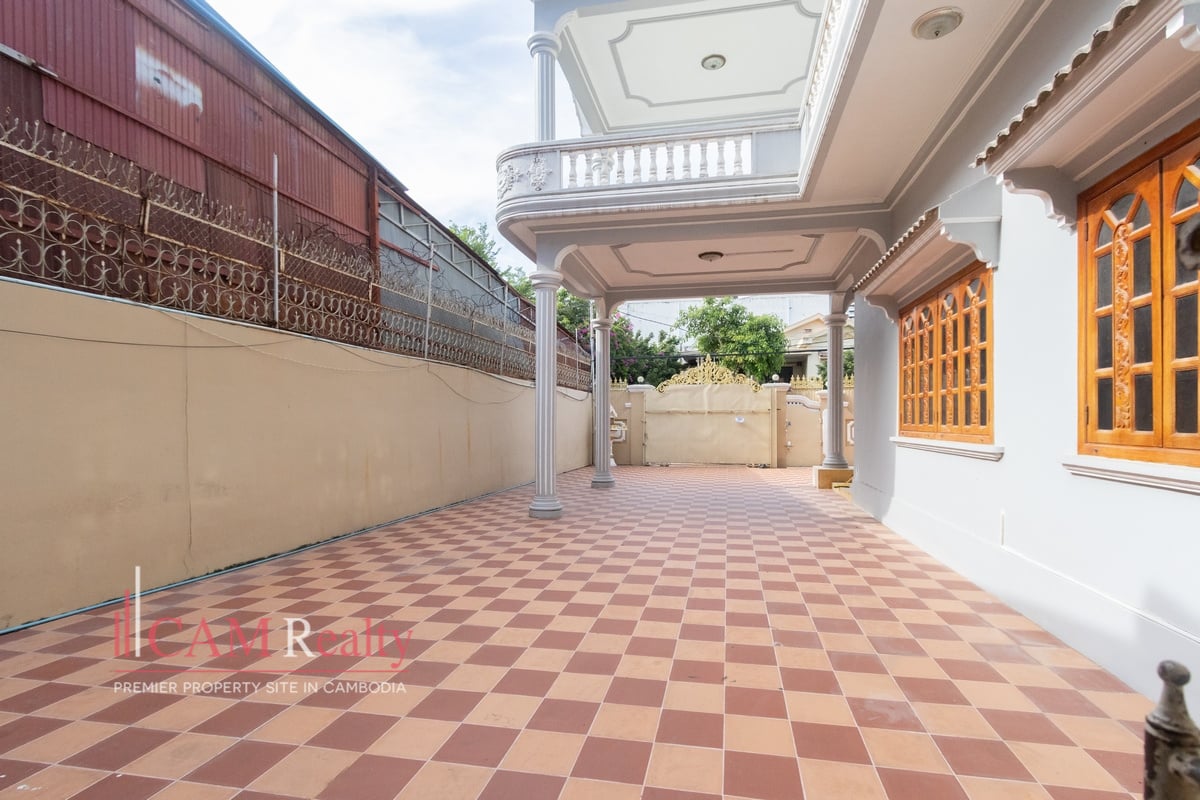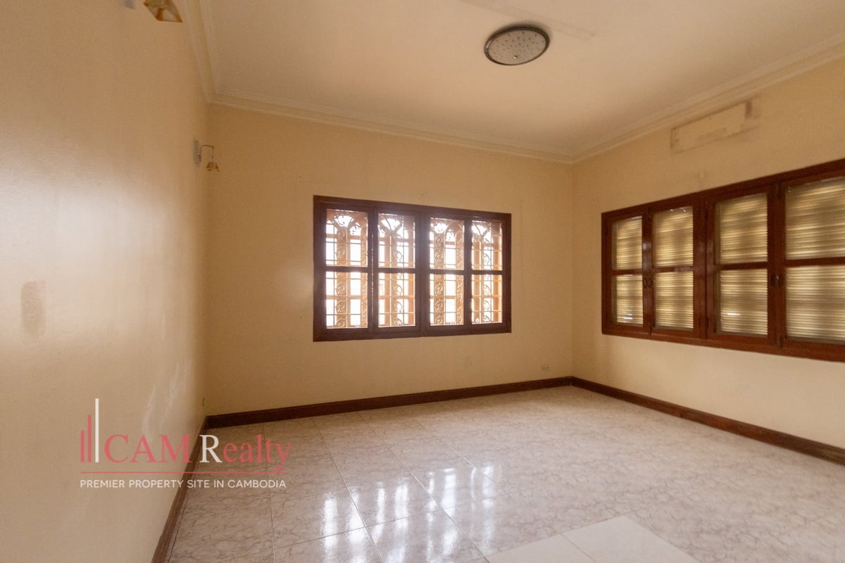 Commercial Villa For Rent in Tuol Kork offers a spacious layout ideal for office or business use. It features eight bedrooms and eight bathrooms, providing flexibility for various setups. The two-story structure sits on a 20m x 25m land, offering ample indoor and outdoor space. Its north-west orientation ensures good natural light throughout the day. The property is well-maintained and ready for immediate occupation.