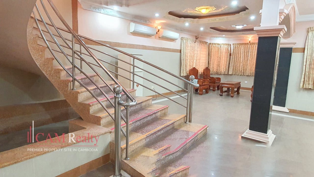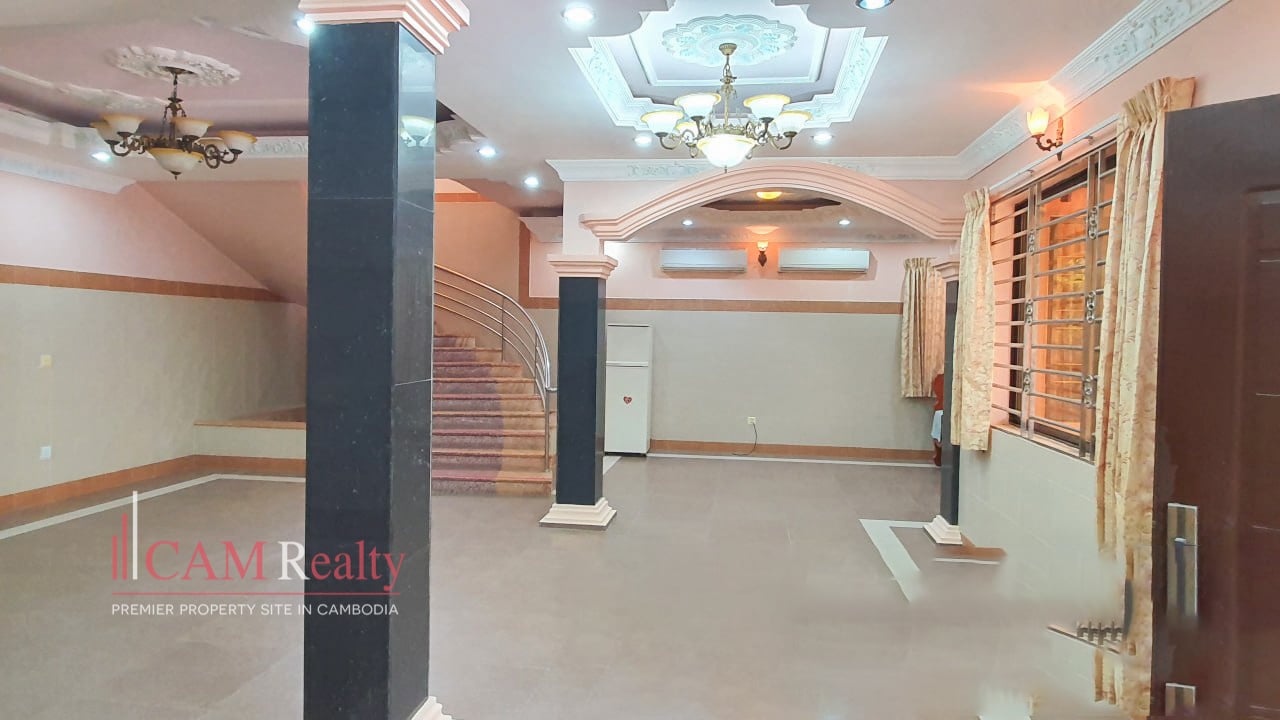 Commercial Villa For Rent in Tuol Kork. This commercial villa is located in Sangkat Boeung Kak 1, Khan Tuol Kork, Phnom Penh. It features two floors with spacious rooms and an open space area. The property offers four bedrooms and one living room, ideal for office or school use. The villa is unfurnished, allowing customization to suit your business needs. With a large land size of 20m x 25m, it provides excellent space and accessibility.