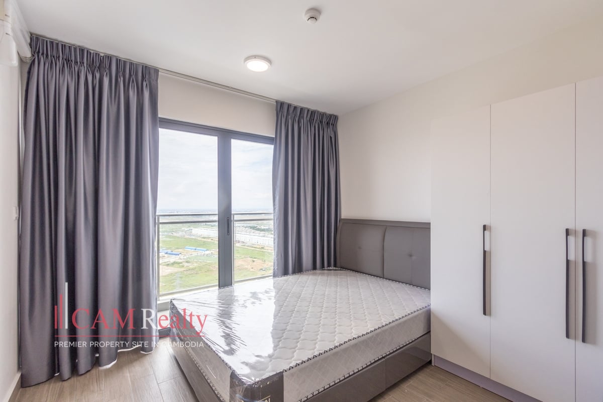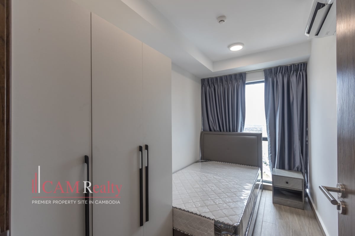 35th Floor 2 Bedroom Condo For Rent in Urban Village Phase 2. This modern condo offers a modern living experience. It features two bedrooms, one bathroom, a living room, and a kitchen. A private balcony overlooks the scenic Basak River. The unit is unfurnished, allowing customization to fit personal style and needs.