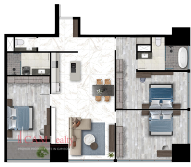 J-Tower 3 is set to be the tallest residential landmark in Cambodia. This magnificent 77-storeys tower is developed by the renowned Tanichu Assetment Co., Ltd. The project offers a total of 360 exclusive 3-bedrooms residences. Each home features a grand 3.2-meter ceiling height for a spacious feel. With a Strata Title, it provides secure ownership for both local and international investors. Handover is scheduled for the first quarter of 2029.