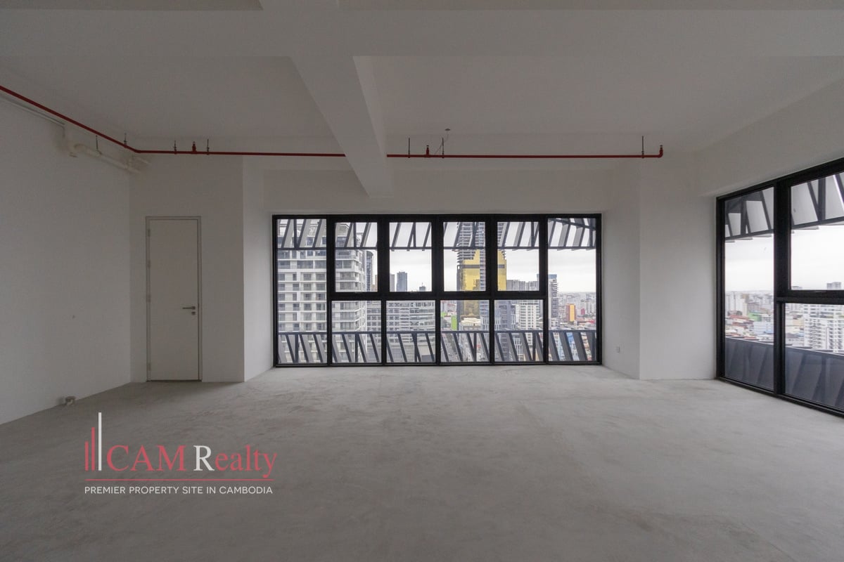 JS Tower is Phnom Penh’s newest mixed-use commercial destination. This impressive 42-story tower offers premium office space for rent. It provides 12,500 square meters of total leasable area. Office units are available from the 5th to the 29th floors. The modern building is ideal for establishing or expanding your open company. Handover conditions include 24/7 security and a full-load backup generator. Tenants are provided a generous three-month free fit-out period.