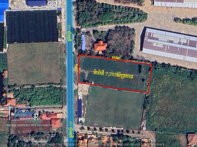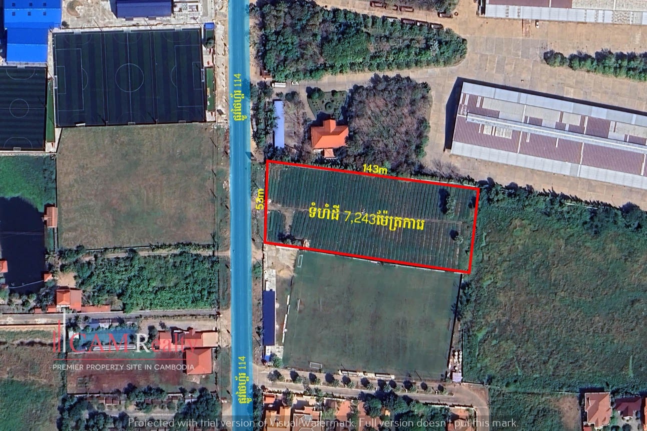 ដីទំហំ 7,243ម៉ែត្រការ៉េ សម្រាប់លក់នៅតាមបណ្ដោយផ្លូវថៃហ្គ័រ (114)