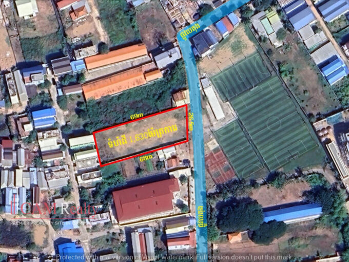ដីទំហំ 1,630ម៉ែត្រការ៉េ សម្រាប់លក់នៅតាខ្មៅ (តាមបណ្ដោយផ្លូវ 241)