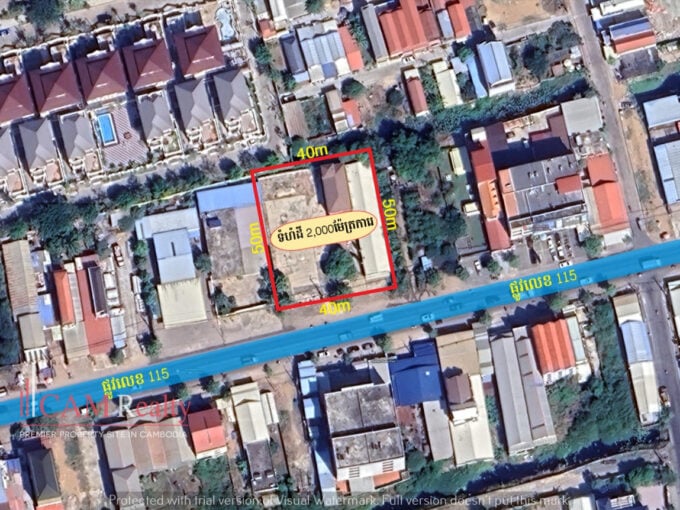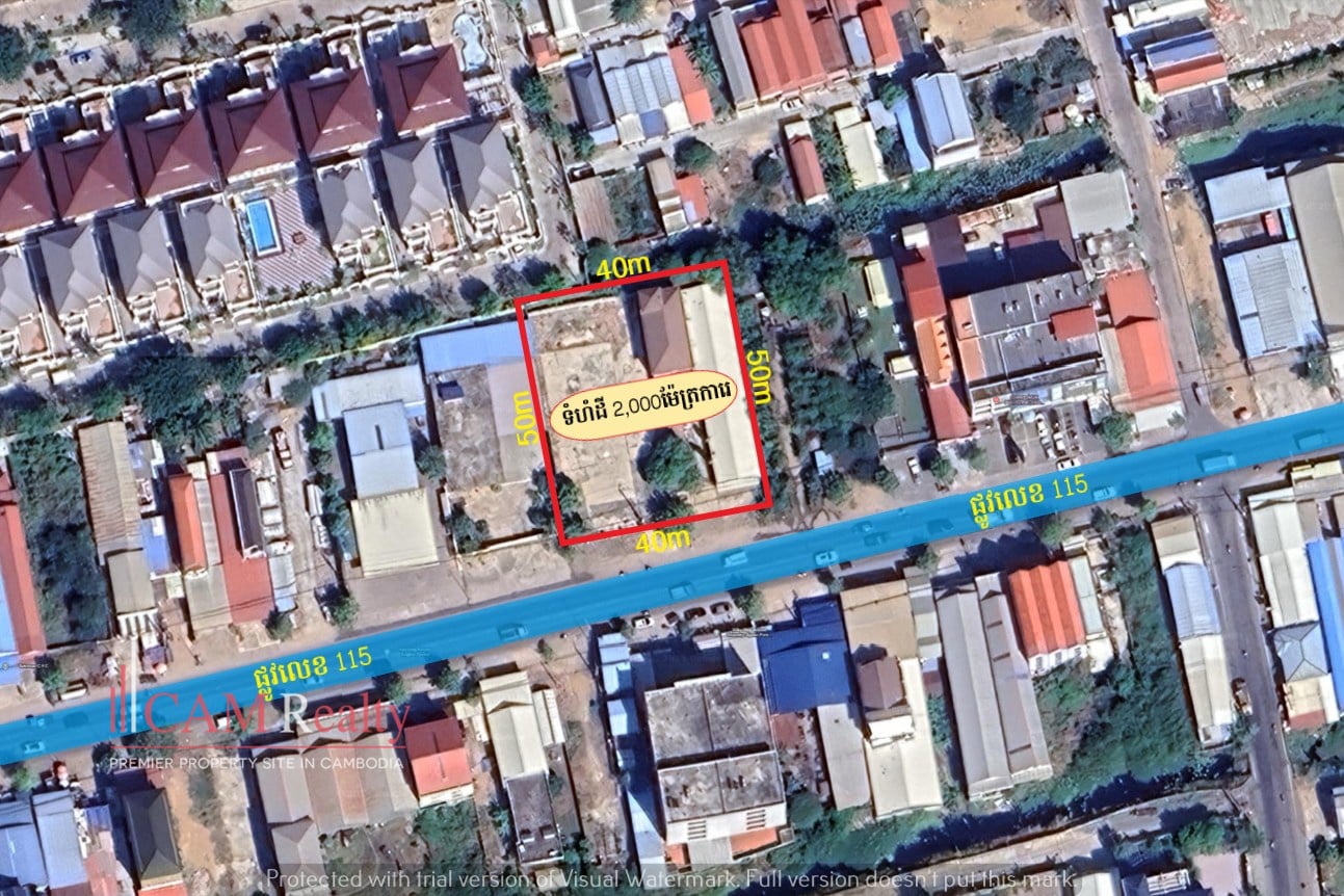 ដីទំហំ 2,000 ម៉ែត្រការ៉េ សម្រាប់លក់នៅតាខ្មៅ (តាមបណ្ដោយផ្លូវ 115)