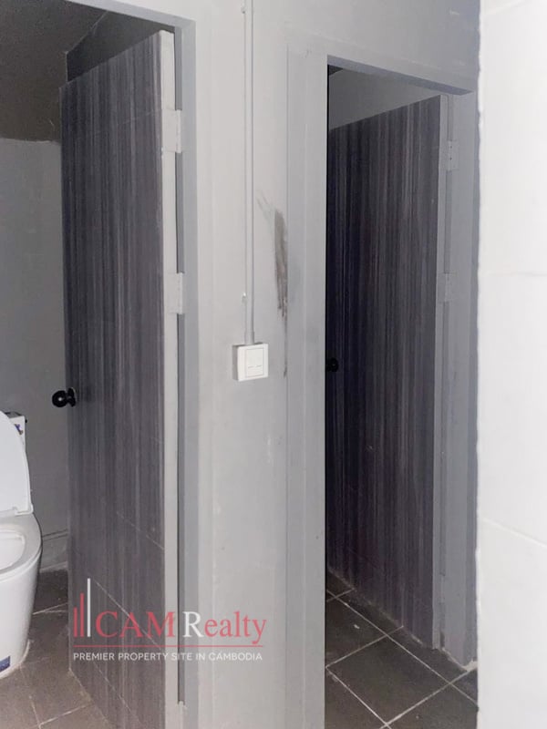Shophouse For Rent in Daun Penh. It features two floors with a practical layout. The property includes two bedrooms and four bathrooms. The space is unfurnished, allowing full customization for your business. With a wide frontage and deep layout, it’s ideal for a shop or small office. The design suits a variety of commercial activities.