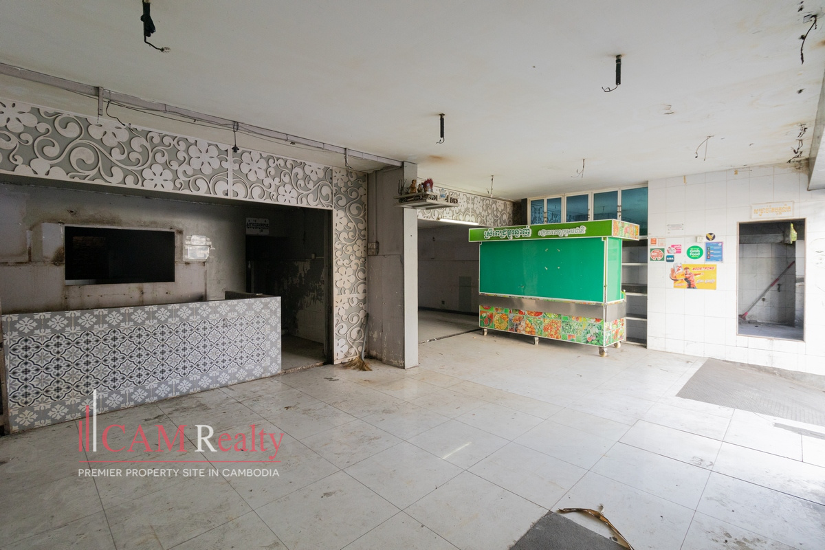 Situated in a prime area of Tuol Kork. Close to schools, markets, and residential communities. Convenient access to main roads and public transport. An excellent location for retail or business operations. Perfect for those seeking visibility and accessibility in Phnom Penh.