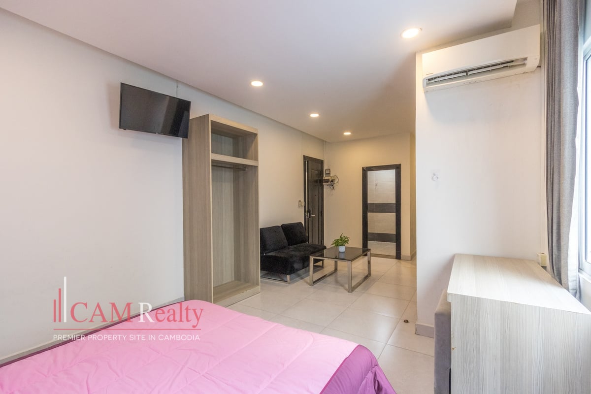 Studio Apartment For Rent in Daun Penh. Nestled next to Wat Botum Park in Chakto Mukh, this studio apartment offers a peaceful living space in the heart of Phnom Penh. It’s just a short walk from the Royal Palace, Chakto Mukh Walk Street, and Sisowat Quay Park — perfect for those who enjoy a central and convenient lifestyle.