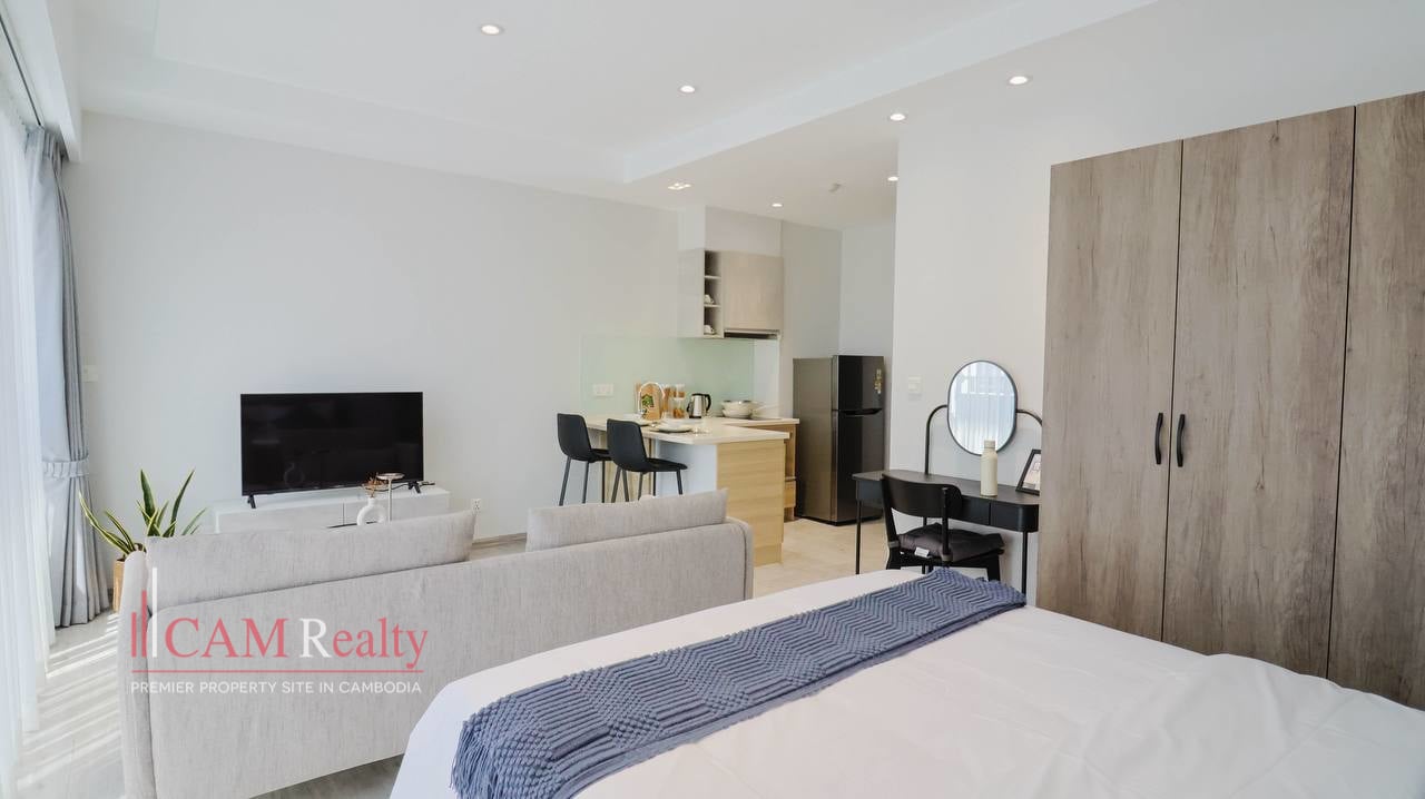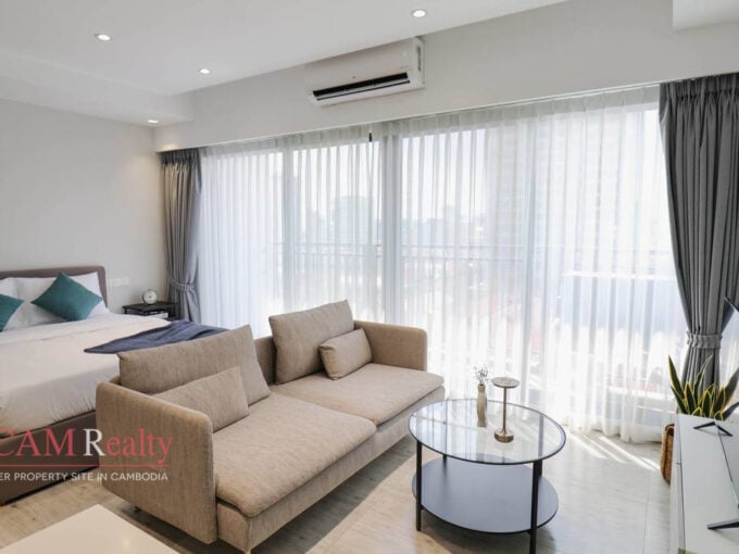 Premium studio room Serviced Apartment For Rent in Boeng Trabaek – 5 minutes from BKK1. Perfectly designed for comfortable urban living, it blends elegant interiors with upscale amenities and professional services.