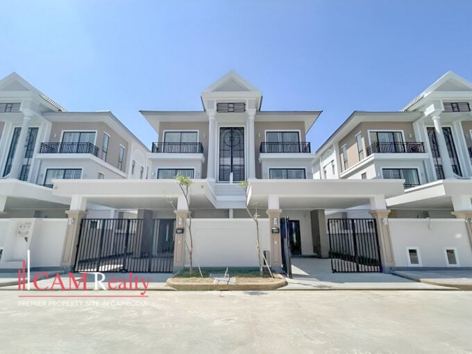 4 bedrooms twin villa for sale along National Road 1 – Phnom Penh. This villa comes in 3 storeys with house dimension of 6m x 12m – comes fully furnished with basic furniture. This villa is located in a green community with leisure facilities including swimming pool and fitness center within the community. You will find international schools, supermarkets, local market, modern coffee shops and restaurant in a few step out of the community’s gate.