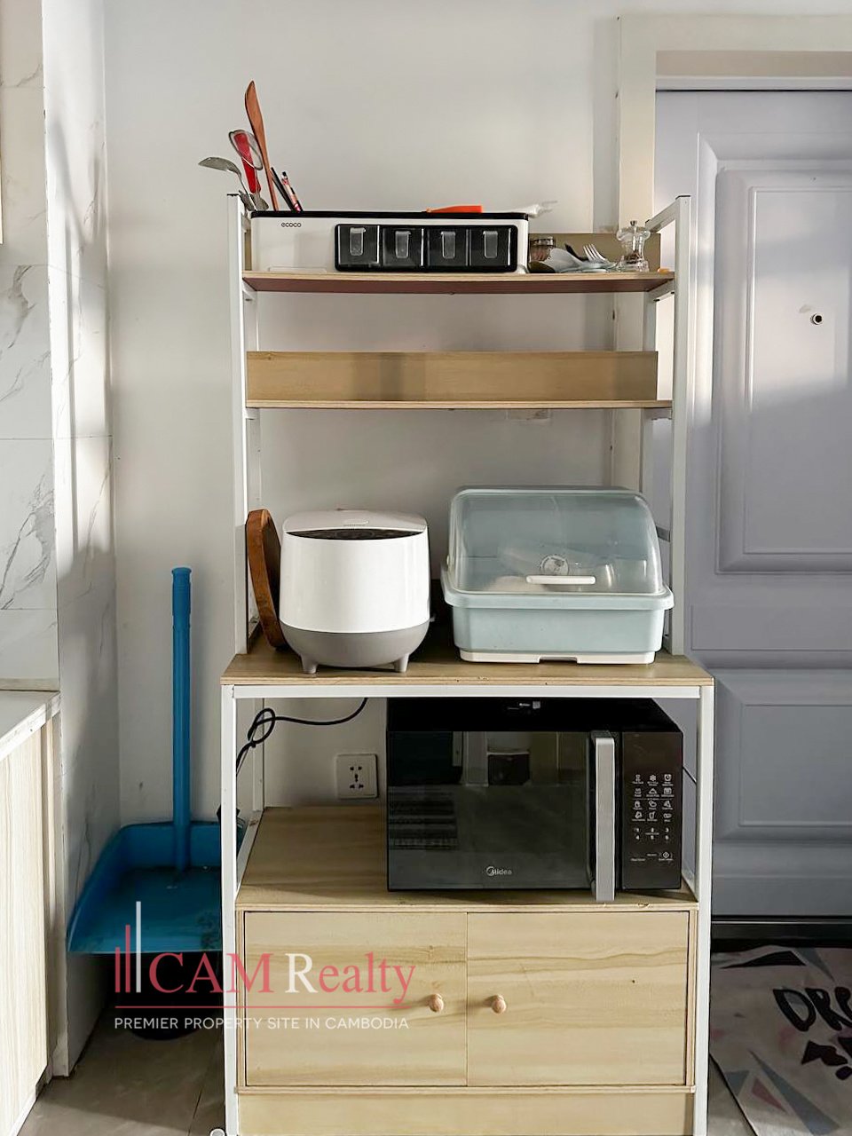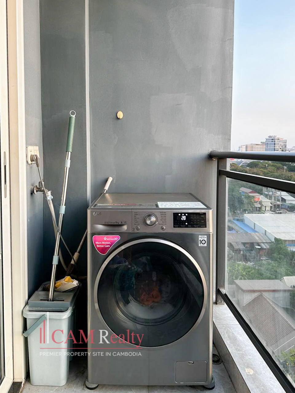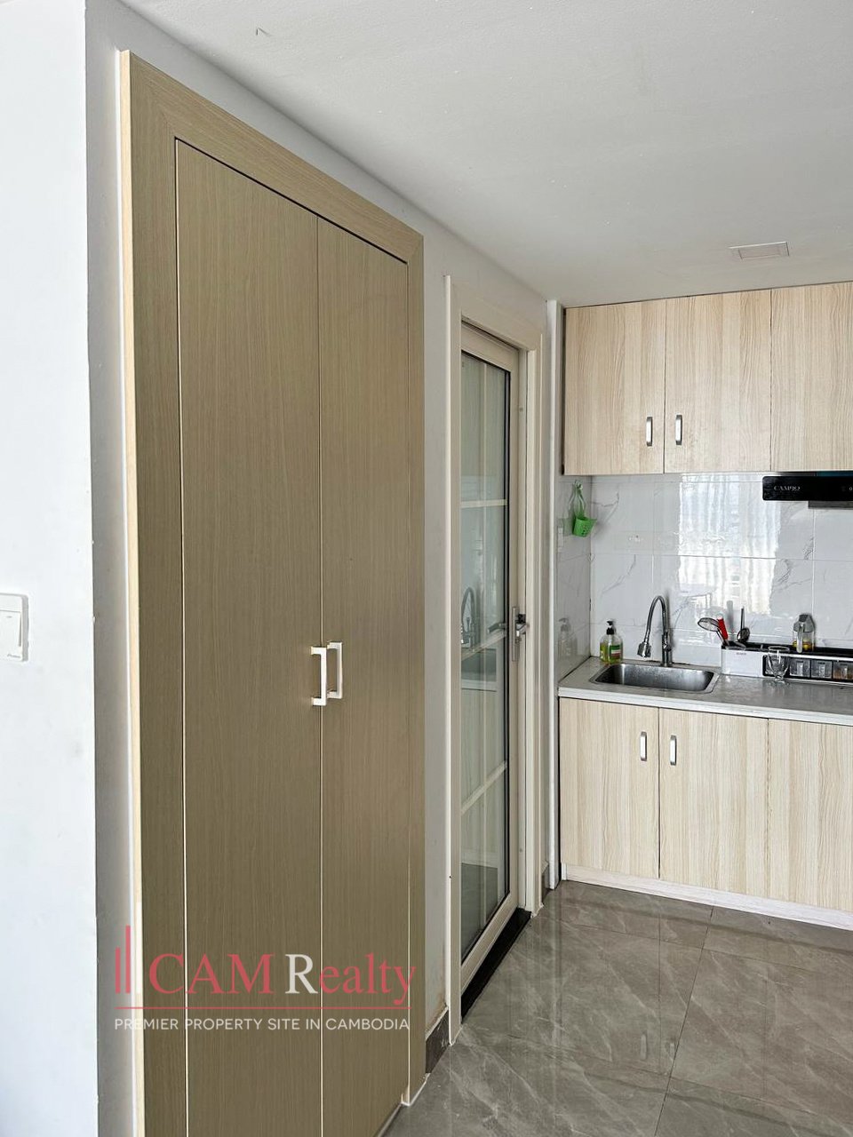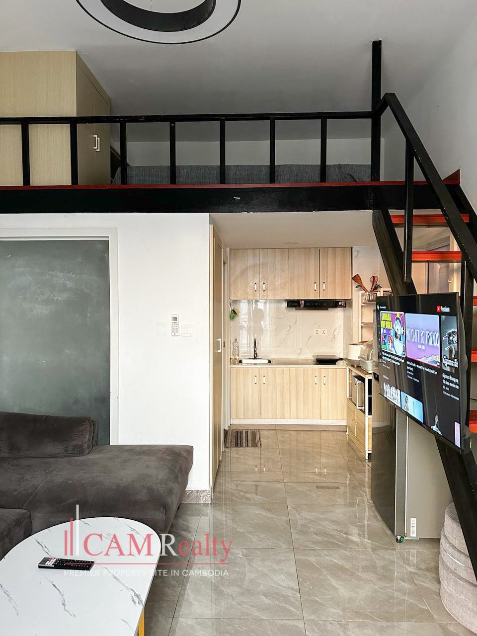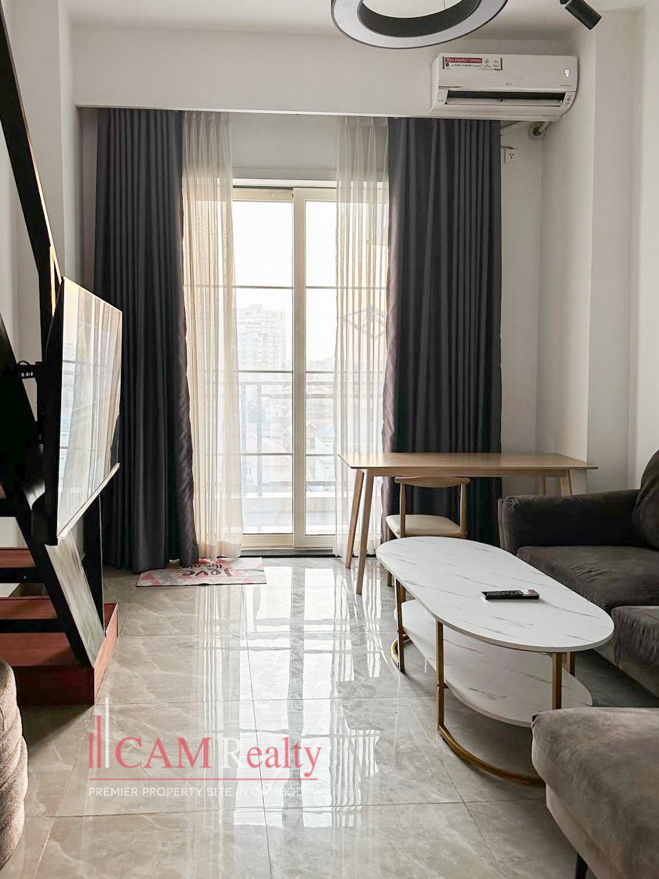 Loft studio condominium for rent in Tuol Kork area – Phnom Penh. This property comes with leisure facilities, including a swimming pool and gym that is open to tenants. Located in BK2 quarter which is only 5 minutes’ drive from TK avenue; 7 minutes’ drive to Vattanac Tower. You will find international schools, restaurants, coffee shops, and convenience stores within a walkable distance.