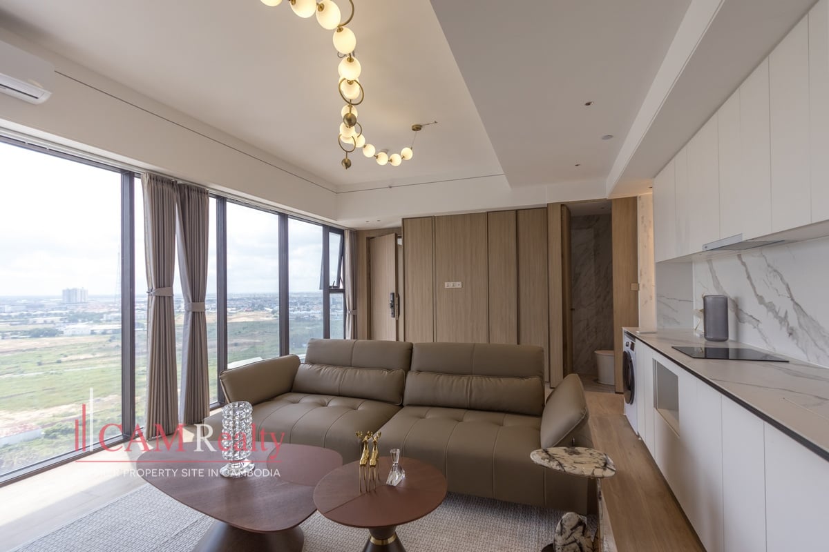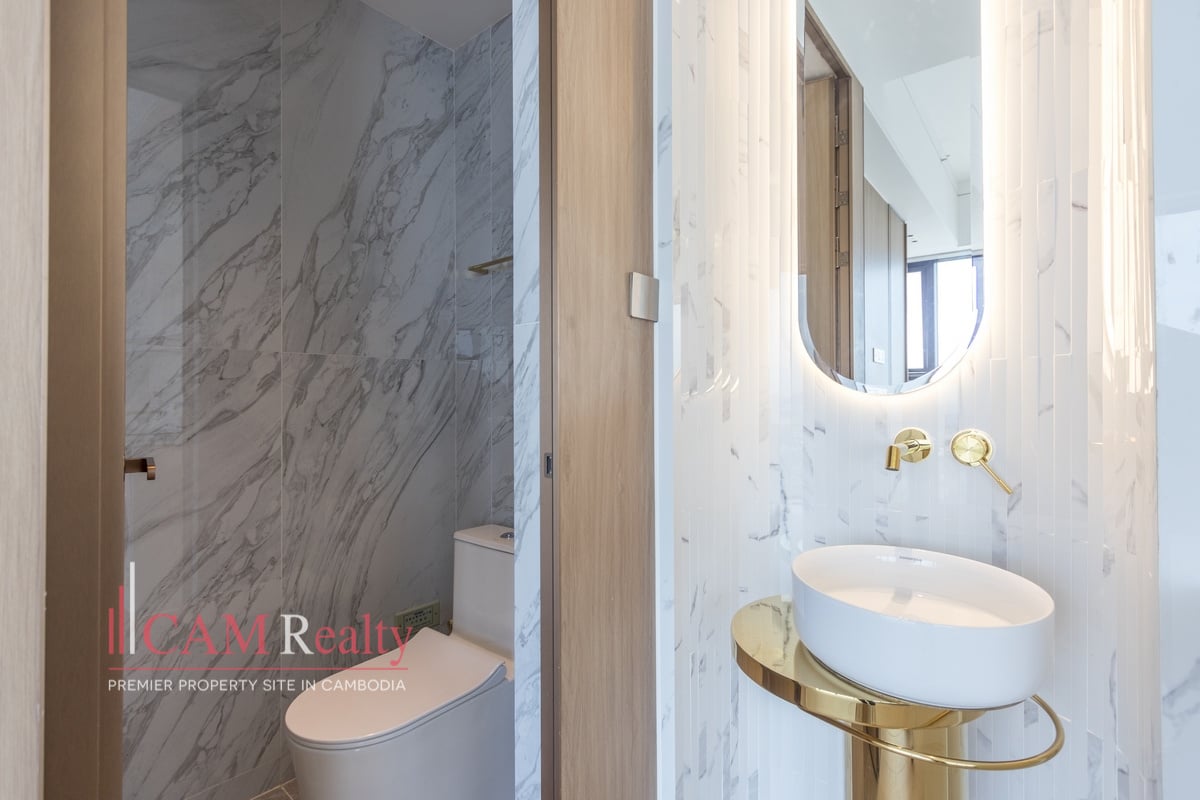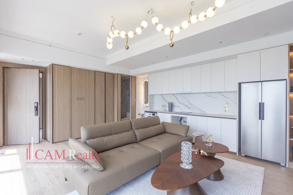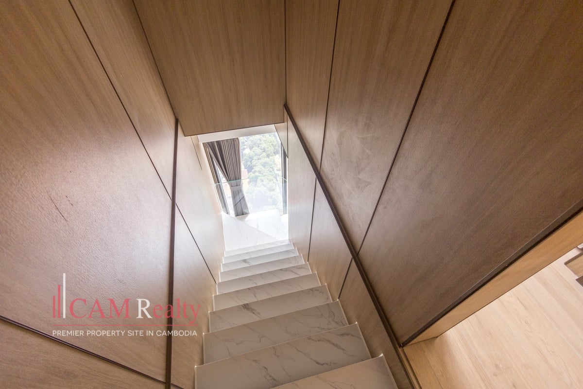 Duplex 2 Bedroom Condo For Rent in Vue Aston. This stylish duplex condo at Vue Aston offers modern riverside living in Phnom Penh’s Kaoh Norea area. The 83.38 sqm net residence comes fully furnished with two bedrooms and three bathrooms, creating an ideal space for both comfort and privacy.