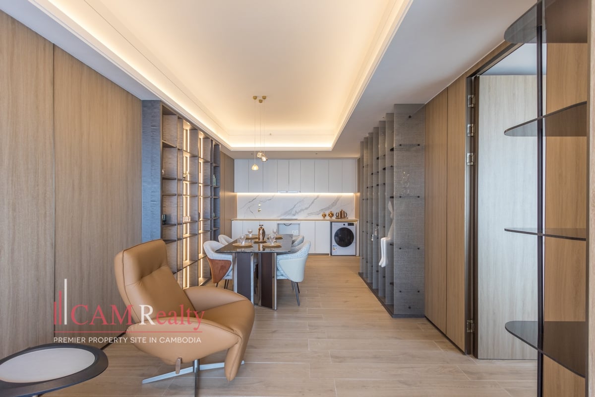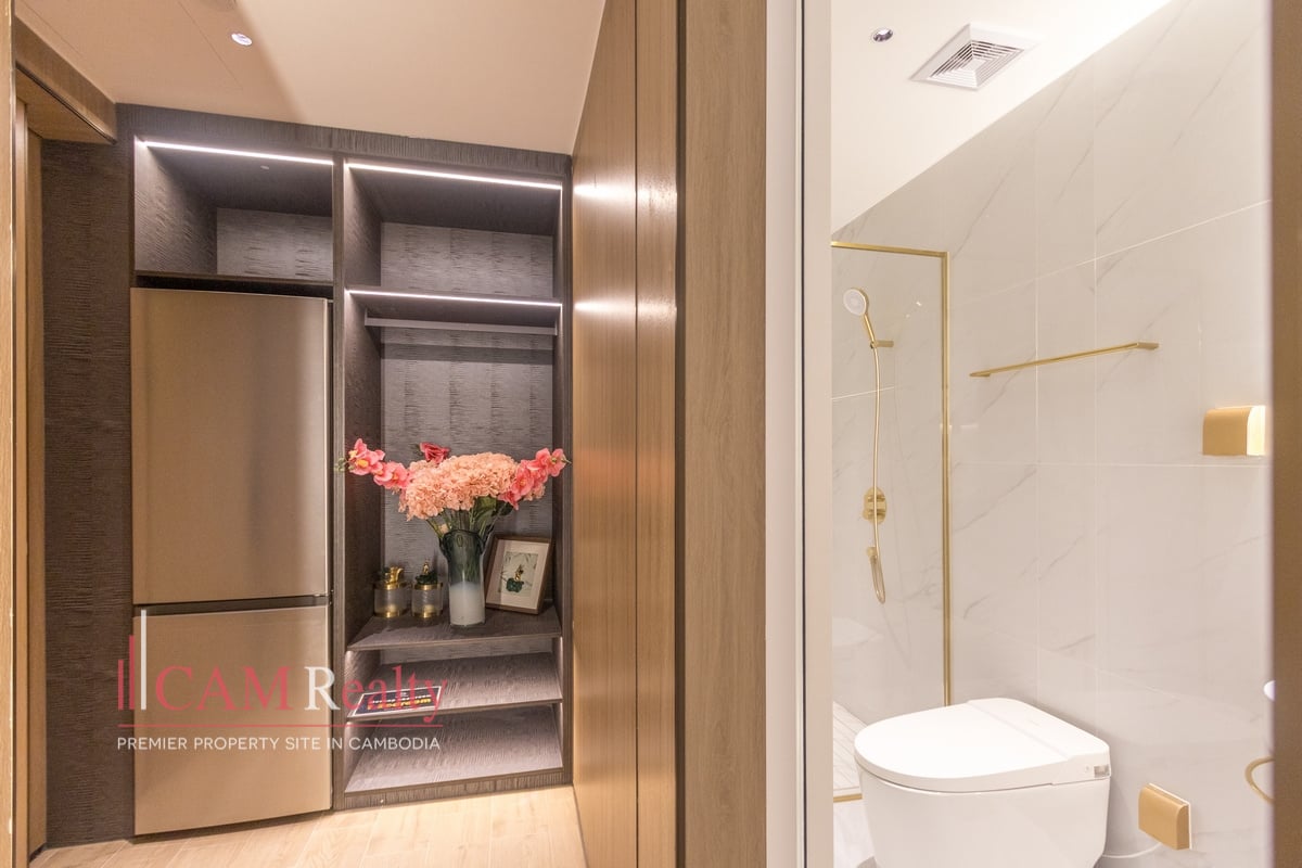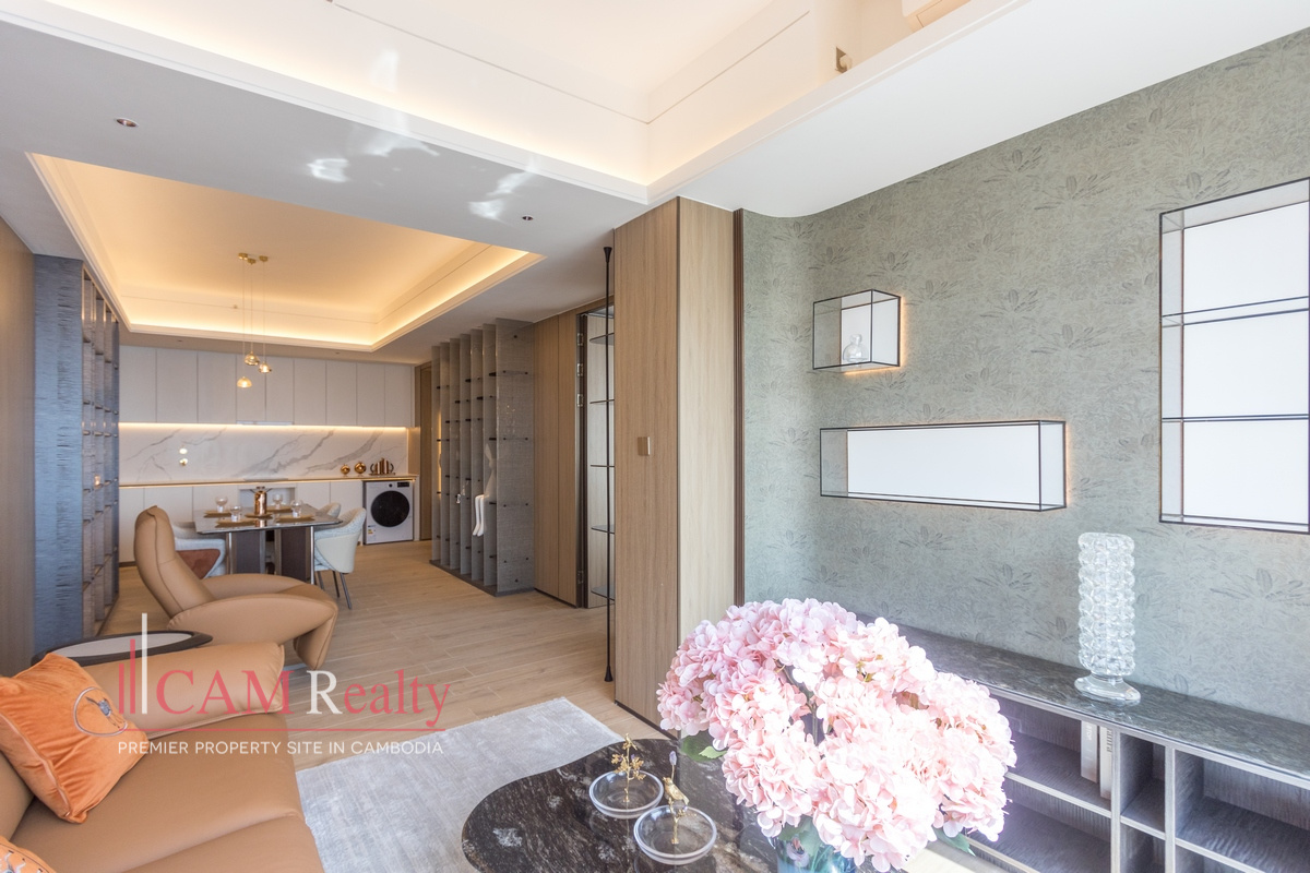 1 Bedroom Condo For Rent in Vue Aston. This condo features one bedroom, two bathrooms, a cozy living room, and a fitted kitchen. Fully furnished with stylish interiors, it’s ideal for professionals, couples, or anyone seeking a compact yet functional home in Phnom Penh.