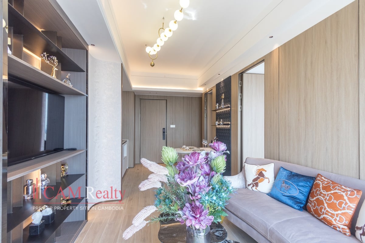 1 Bedroom Condo For Rent in Vue Aston. This condo features one bedroom, 1 jack and jill Bathroom, a cozy living room, and a fitted kitchen. Fully furnished with stylish interiors, it’s ideal for professionals, couples, or anyone seeking a compact yet functional home in Phnom Penh.