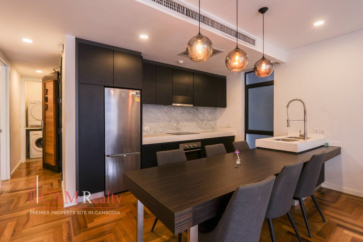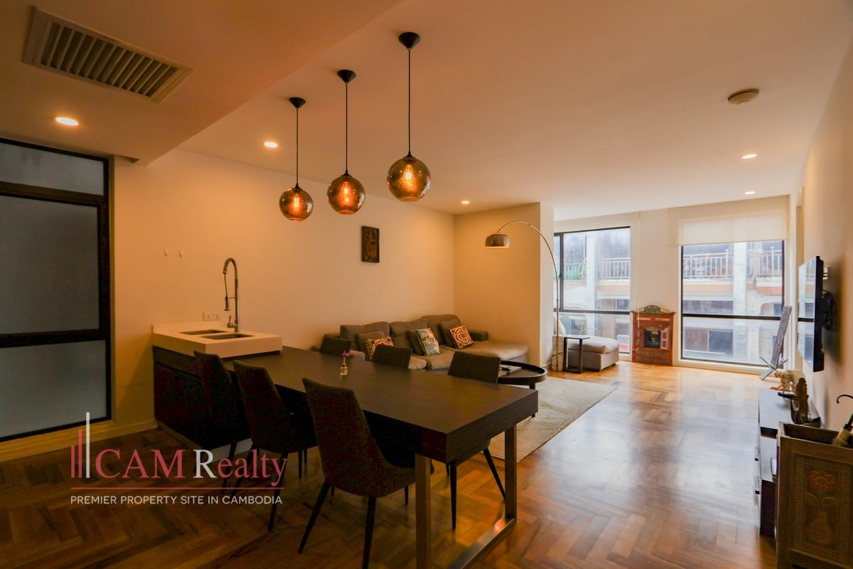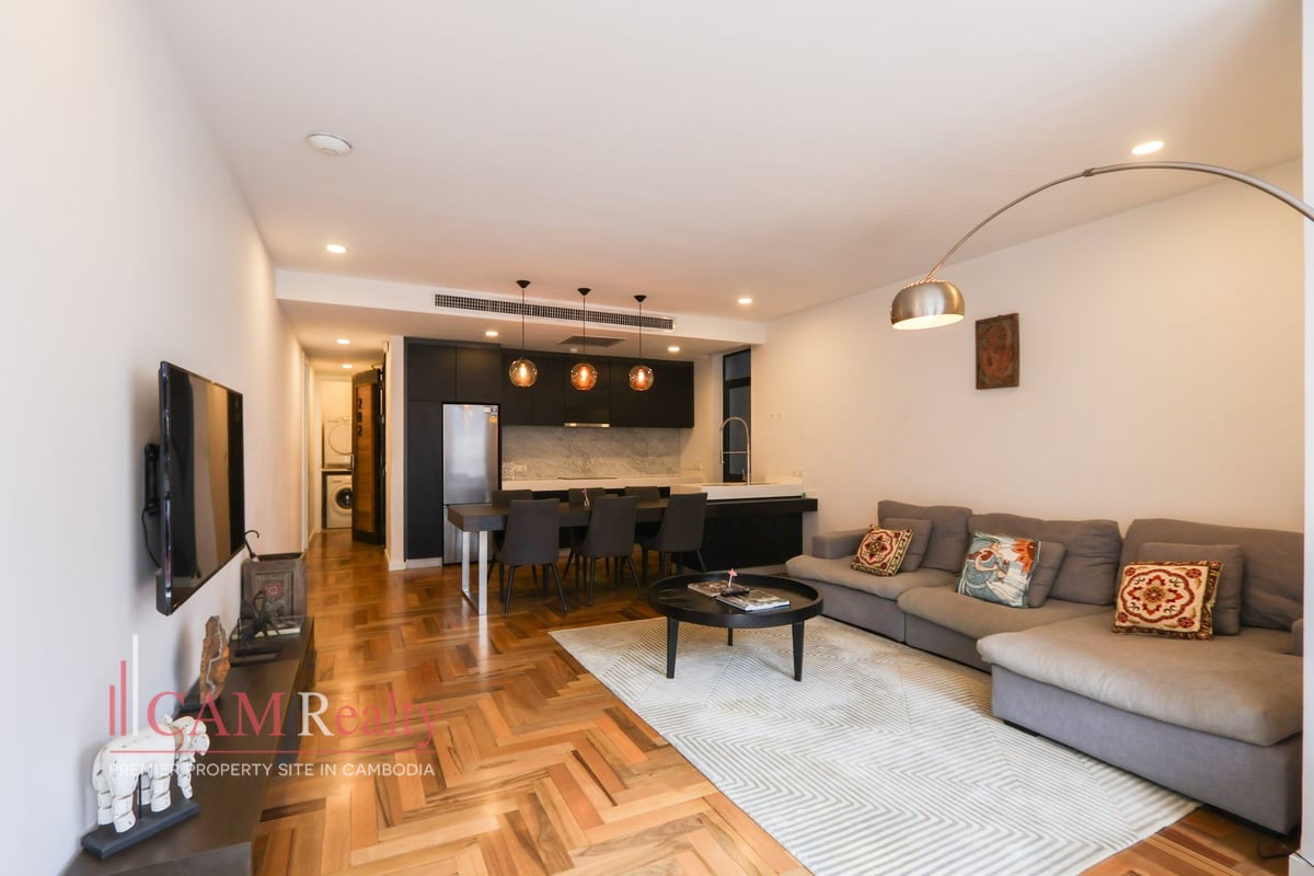 Experience premium living in this luxurious condo. This residence is located in the heart of Tonle Bassac. It is an ideal choice for high-end residential living. The unit is fully furnished with elegant decor. Spanning 90 sqm, it offers a vast living space. This home blends modern style with ultimate comfort.