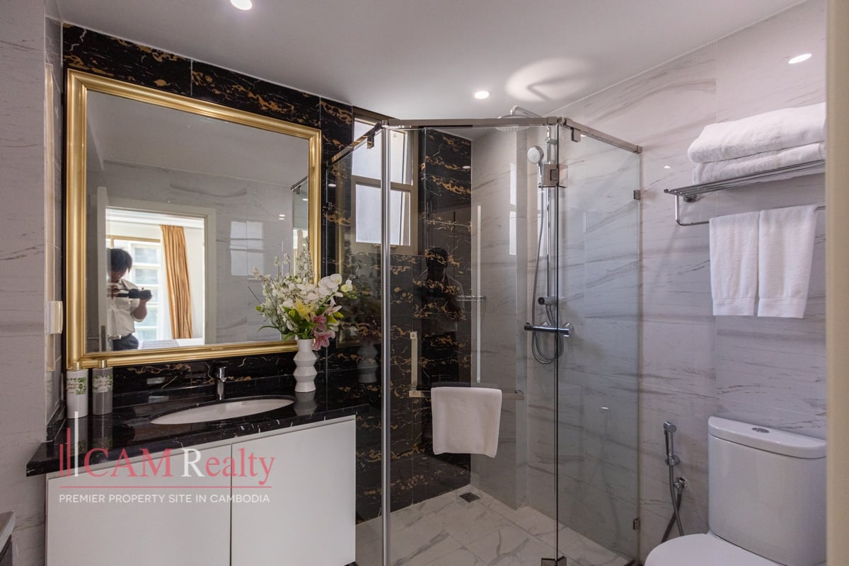 トンレバサックエリア南部にあるロフト付きペントハウスの2ベッドルームサービスアパートメントです。イオンモールやBKK1地区から車で8分です。このモダンアパートメントにはきれいなスイミングプールと景色の良いジムがついています。 賃料:$3200/月 家具付き 2ベッドルーム 3バスルーム(マスターベッドルームはバスタブ付き) リビングルーム キッチン プライベートバルコニー 面積:155.14㎡ スイミングプール&ジム…