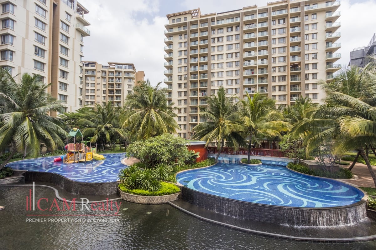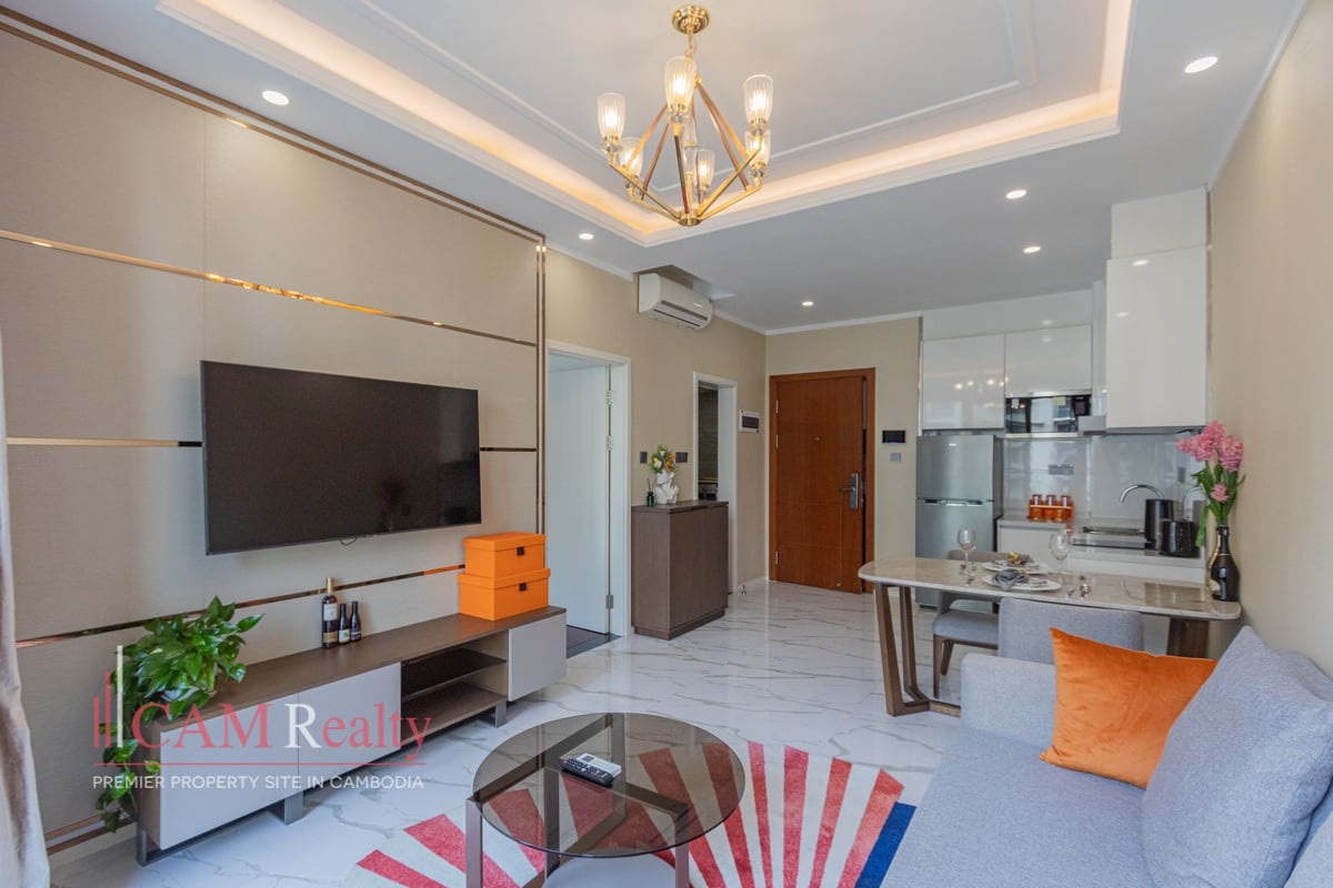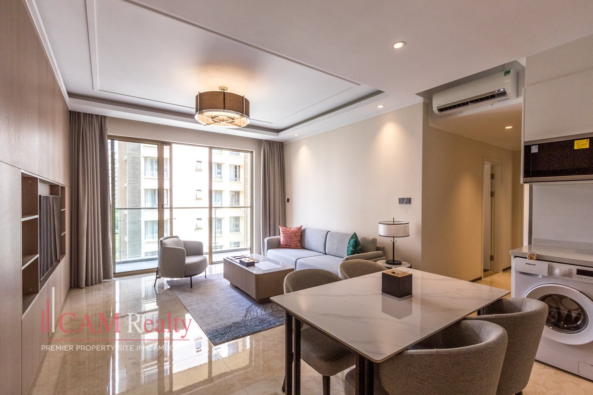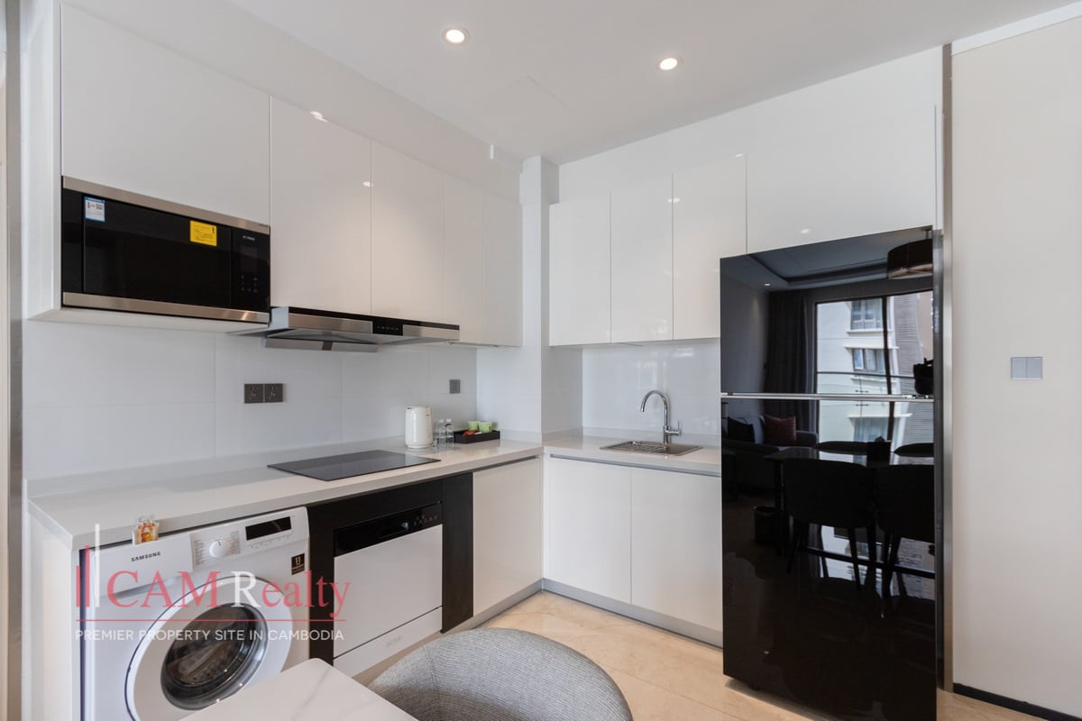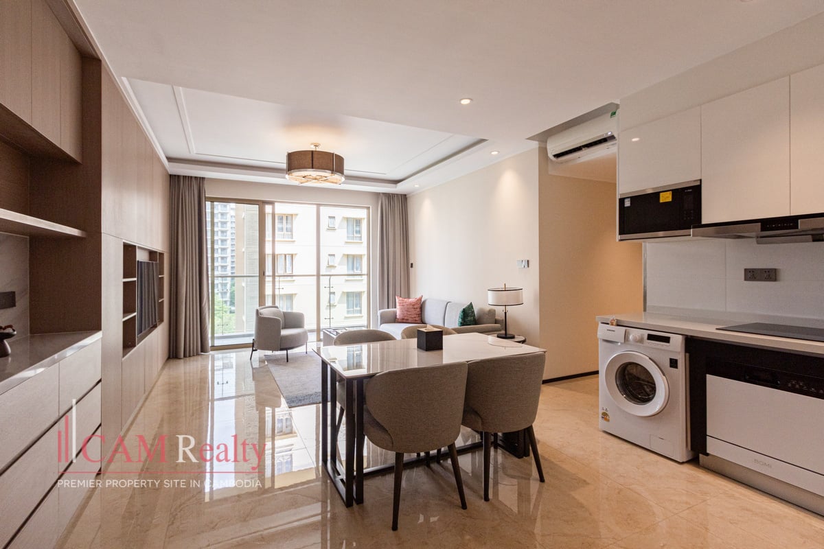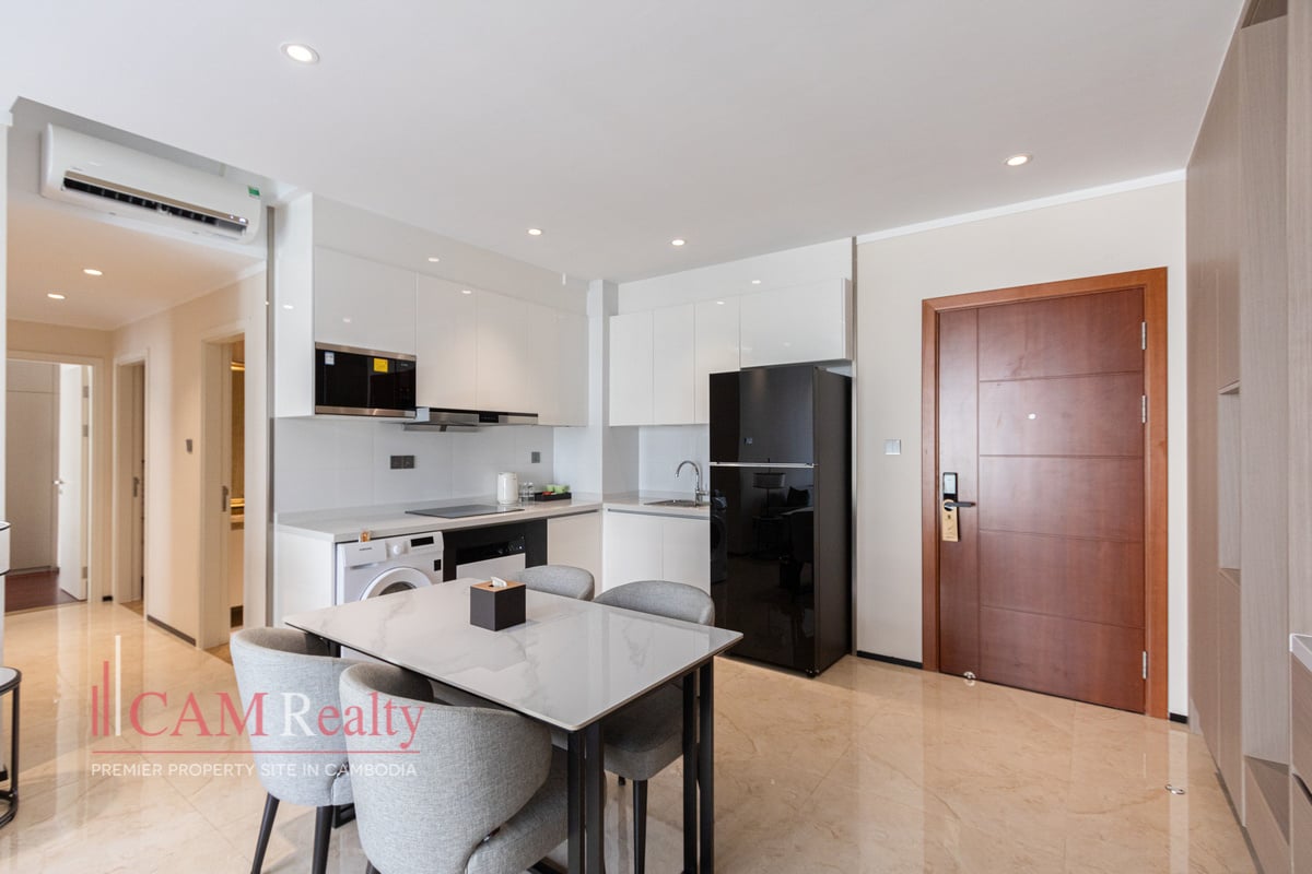 The residence features two spacious bedrooms and two modern, well-appointed bathrooms. A bright and airy living room provides an ideal space for relaxation. The private balcony offers stunning panoramic views of the Phnom Penh skyline. A fully equipped kitchen is included for all your culinary needs. Every corner of the apartment is designed for maximum comfort and utility. Professional management ensures that all your service requirements are met promptly.