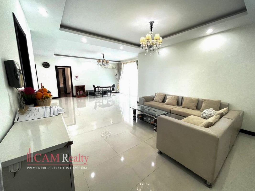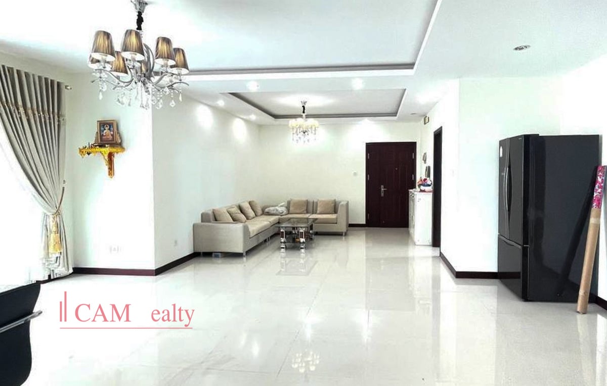 4 bedrooms condominium for rent at Rose Condo in Tonle Bassac – Phnom Penh. This 259.07 sqm apartment comes with a full fixed set of furniture. It comprises a spacious living room, with a wide balcony that overlooks both the city view and river view, a closed-door kitchen, 4 bedrooms, and 4 bathrooms.