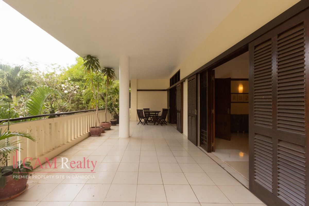 Renovated 3-bedroom ground floor apartment is located in a quiet and convenient area of Sangkat Srah Chak, just a short distance from Calmette Hospital. Set on the ground floor of a well-maintained villa, the property offers comfort, privacy, and security, making it ideal for families, professionals, or long-term residents.