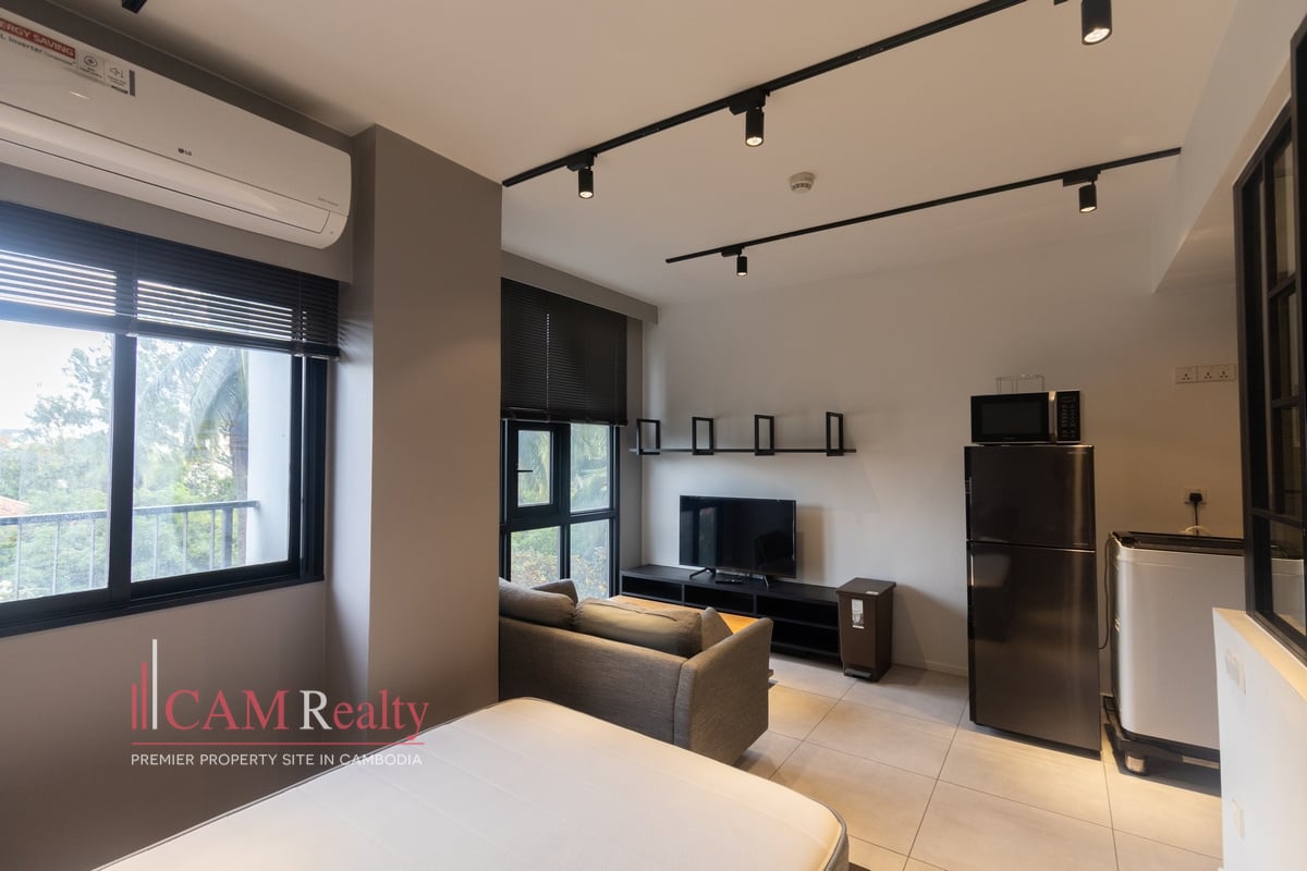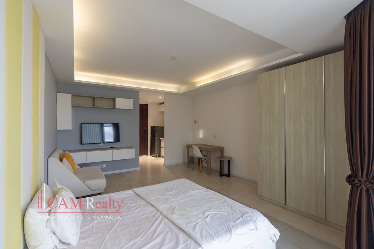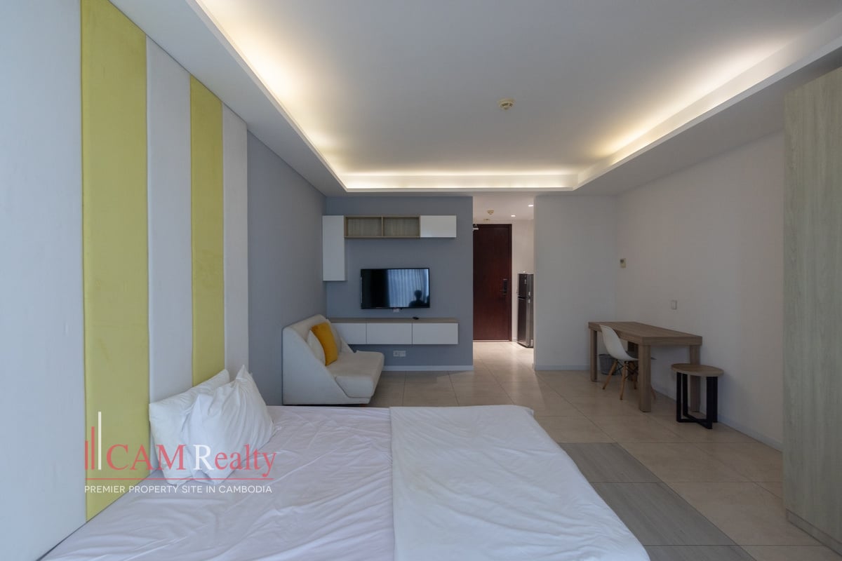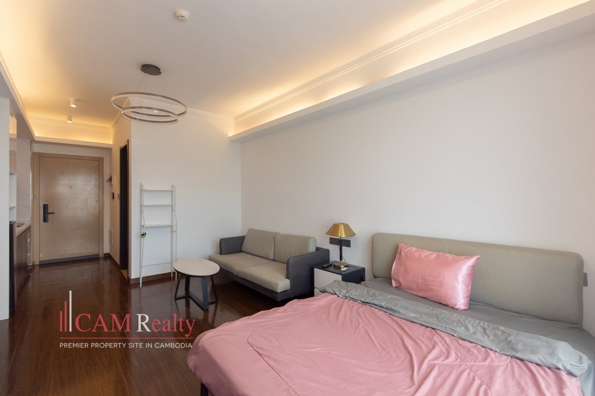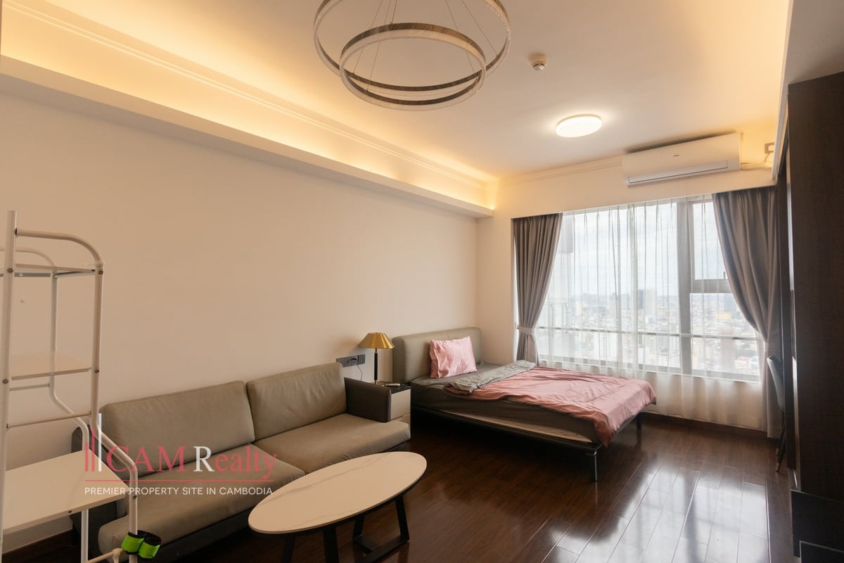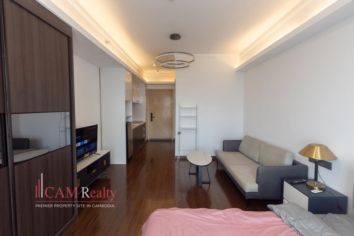 21st Floor Studio Condo For Rent in The Penthouse Residence. This modern studio condo is located on the 21st floor of The Penthouse Residence, directly across from AEON Mall Phnom Penh. It offers a stylish living space within one of Tonle Basak’s most sought-after developments.