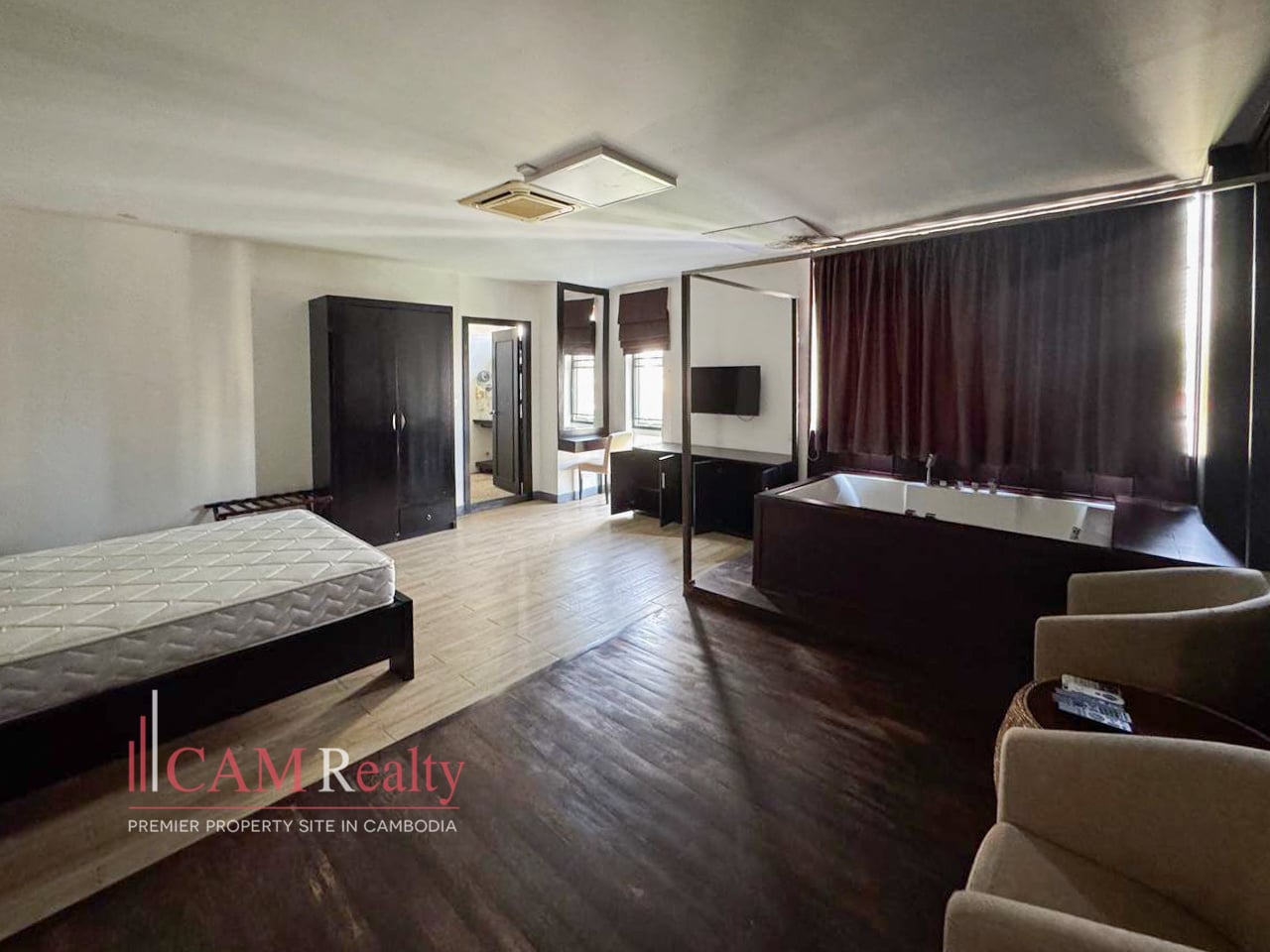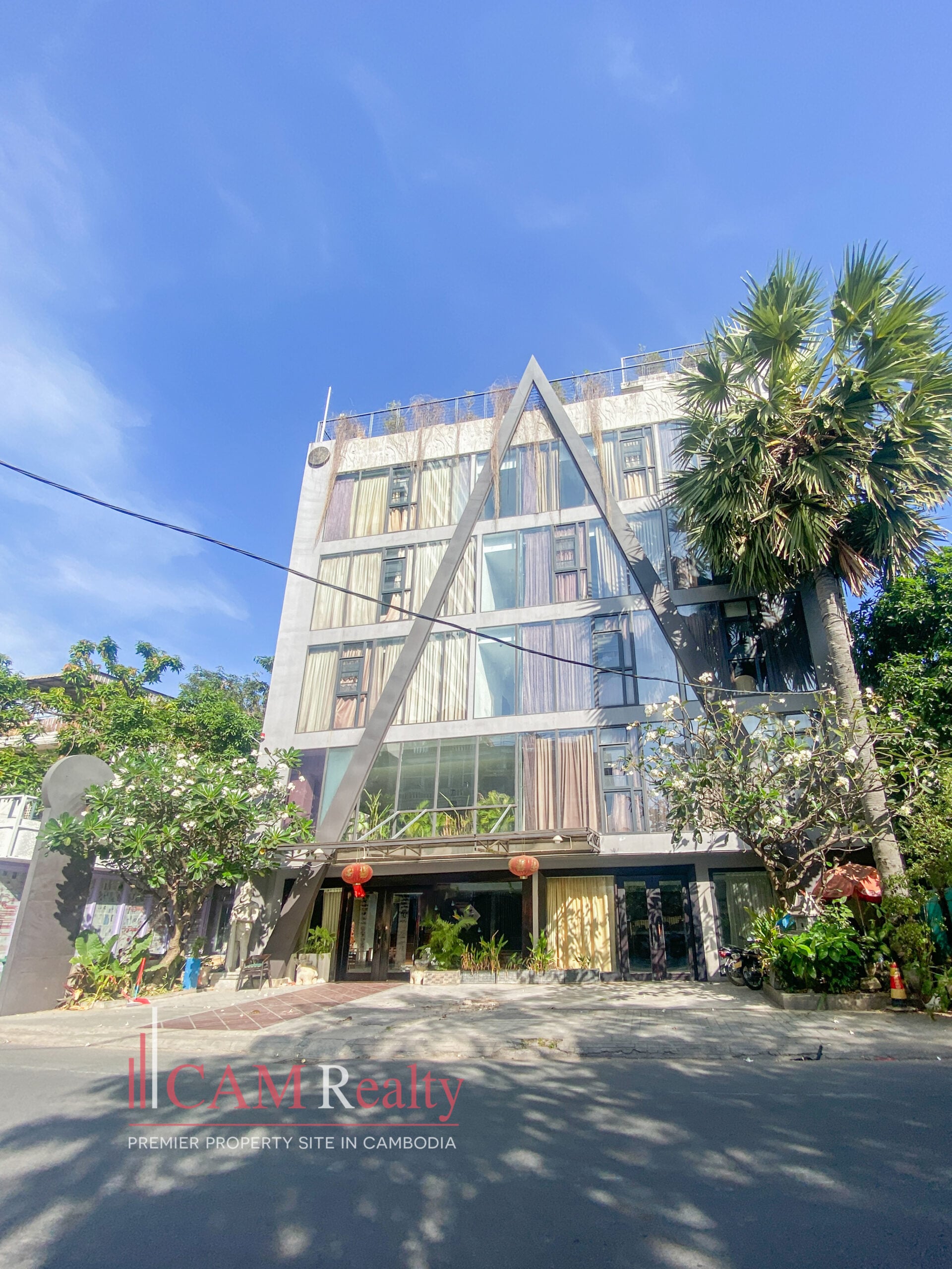 Situated in Sangkat Tonle Basak, Chamkar Mon district. This area is popular with tourists and expatriates. Nearby are offices, embassies, and commercial centers. Easy access to main roads and city landmarks. The neighborhood supports strong hotel demand year-round.