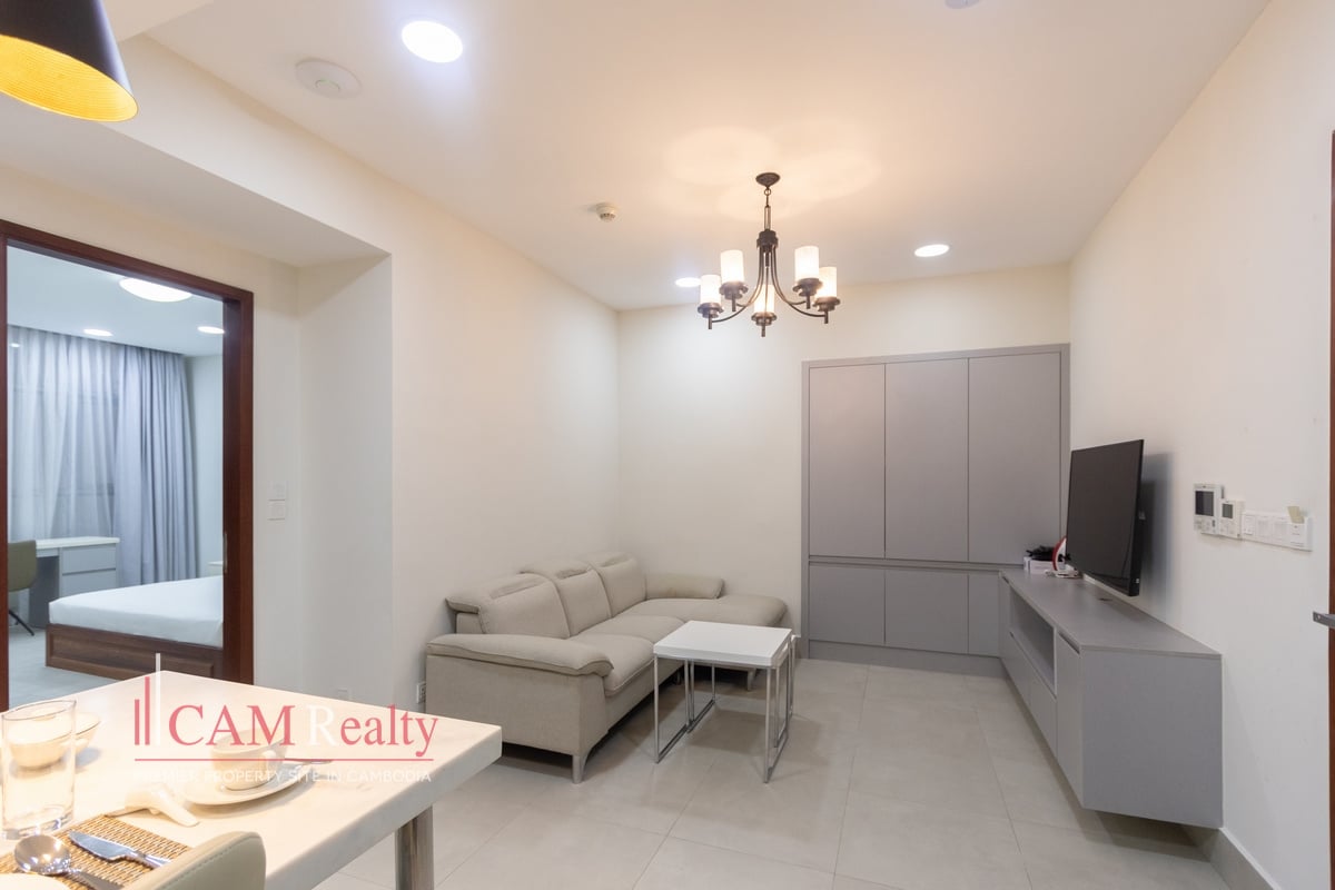 Luxurious 1 bedroom serviced apartment for rent in BKK1 area – Phnom Penh. This luxurious apartment measures 65 sqm and comprises a spacious living room with a complete lounge set and a mounted TV. Meanwhile, the kitchen comes with an oven and a full set of appliances provided. Plus, the bedroom comes with an en-suite bathroom. Further, the property also has a wide range of recreational facilities to ensure the well-being of its occupants.