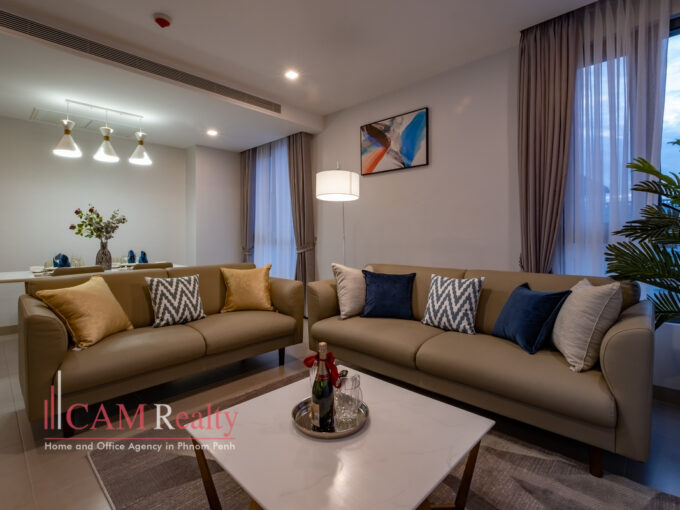 3 Bedroom Serviced Apartment For Rent in BKK1. This modern 3-bedroom serviced apartment in BKK1 offers luxurious city living in Phnom Penh’s most sought-after neighborhood. Combining space, comfort, and smart technology, it is ideal for families, professionals, or long-term residents seeking convenience and security in a prime location.