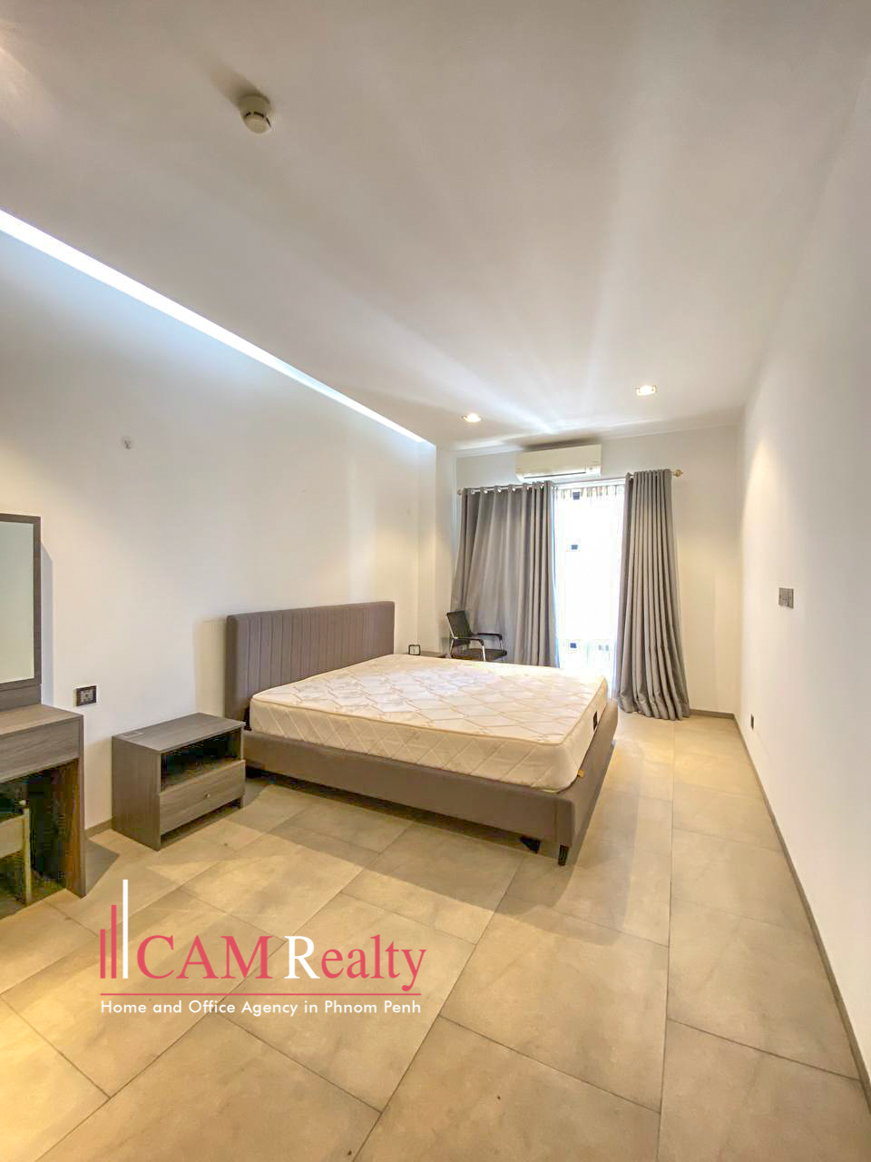 Center of BKK1 area| Very nice 3 bedrooms serviced apartment for rent. It locates in central of BKK1 area. At this location, you could find coffee shop or restaurant in few minutes by walking. It such a comfortable location for living. At this unit, all bedrooms and living room in this flat are attached a big window. There have 2 private balconies, one at living room and another at master bedroom. There have 3 bathrooms inside unit, 2 bedrooms attached bathrooms and another bathroom for sharing at living room. There have pool, gym, play ground and coffee shop at 4th floor with fixed car parking.
