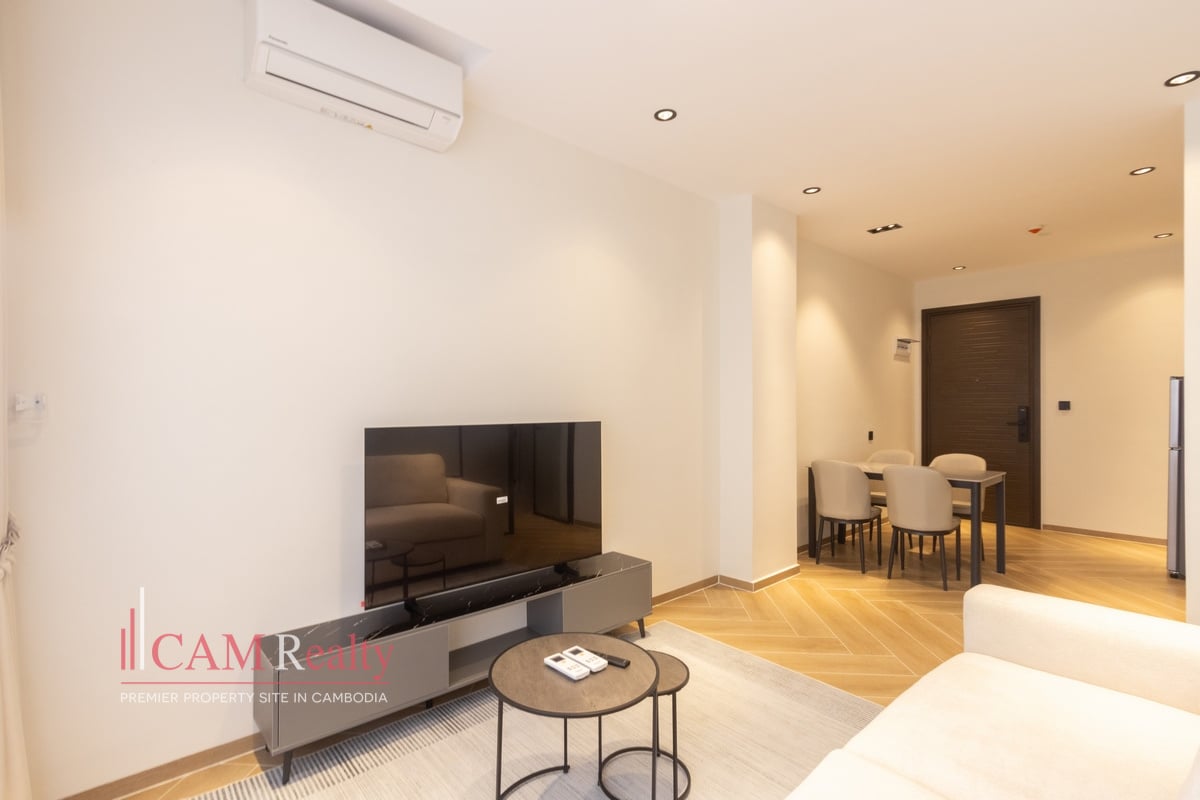 Modern style 1 bedroom apartment for rent in Toul Kork area – Phnom Penh. This property locate in a clean, safe & quiet area in Beong Kok1 quarter, Toul Kork. You will spend 8 minutes by walking to go to TK Avenue makret.
