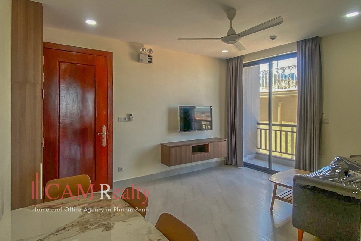 New brand 1 bedroom services apartment for rent at street 2024 area, Phnom Penh. The property is the newest building in the area, offering a range of impressive features. It is securely enclosed by a fence with two gated entrances one at the front and one at the rear. The ground floor includes a spacious parking lot, and security personnel are on duty 24/7. The building has a total of twelve floors. Access between floors is provided by both an elevator and an emergency staircase. On the rooftop, you’ll find a beautiful swimming pool, as well as common restrooms for both men and women. Additionally, the same floor features a well equipped fitness gym. The rooftop level boasts a larger space with stunning panoramic views.