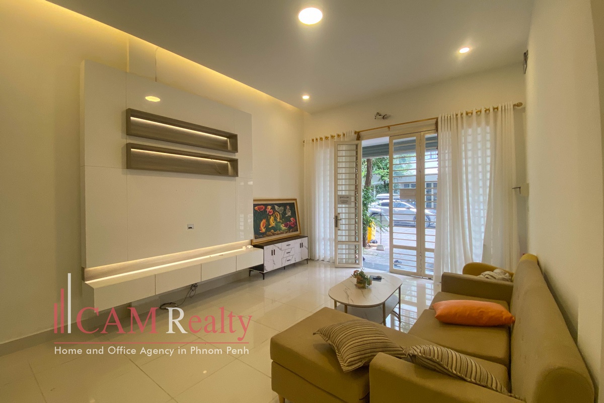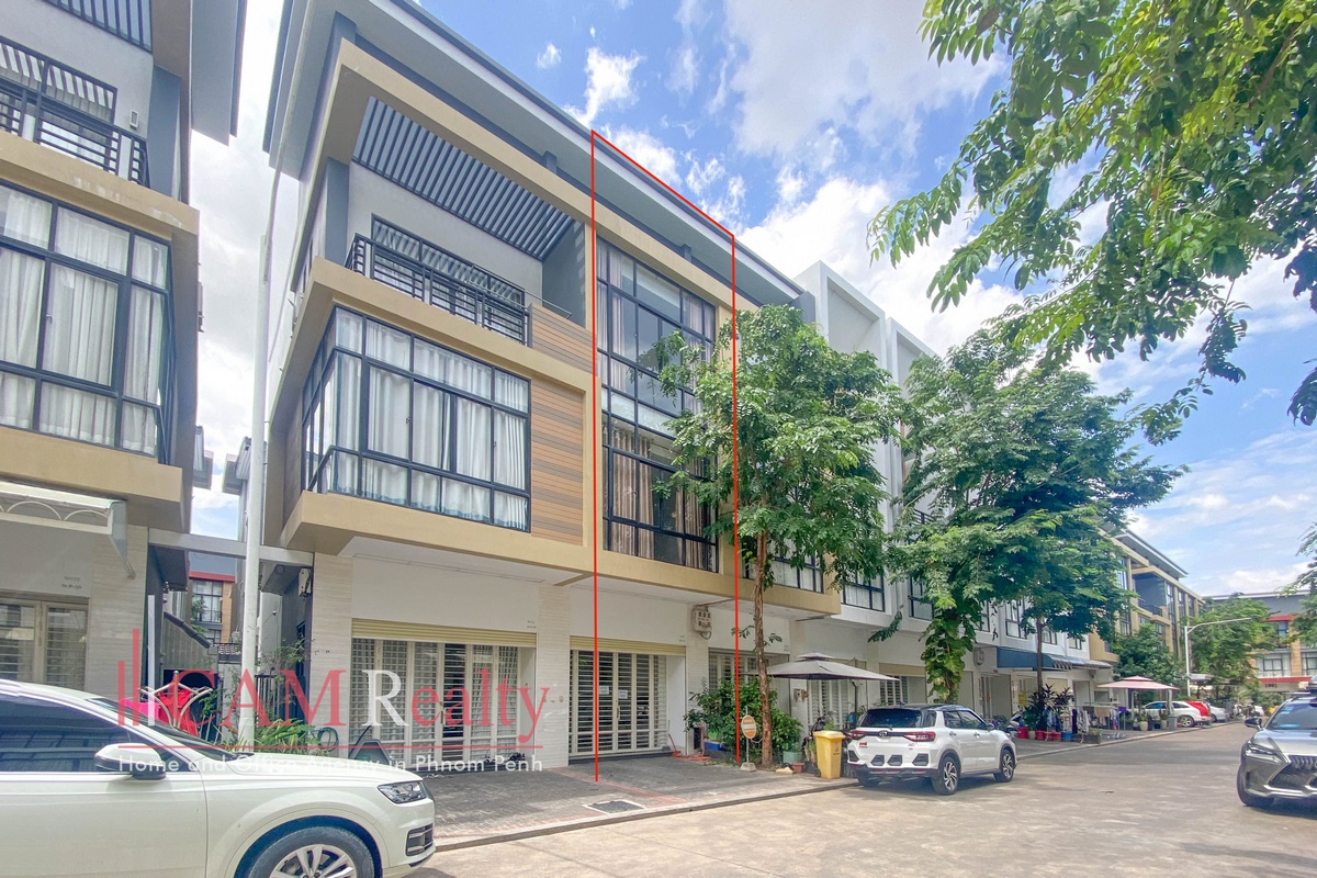 4 bedroom shophouse for rent in Borey Peng Huoth Boeng Snor – Phnom Penh, This property is designed for both residence and managing family business in the gated community. Featured an open space for family business, a bathroom, and a kitchen on the ground floor. Meanwhile, the 1st and 2nd floor feature 2 ensuite bedrooms per floor. It also leaves a fair sized parking space in the front yard of the house.