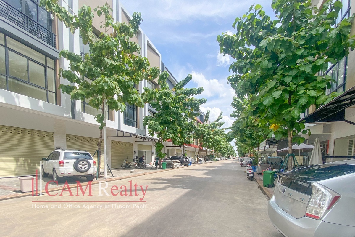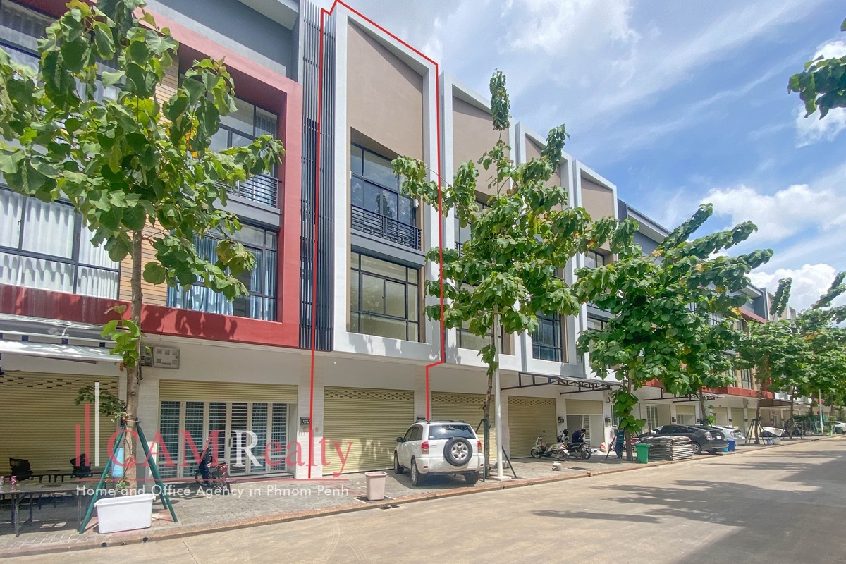 4 bedroom shophouse for sale in Borey Peng Huoth Boeng Snor – Phnom Penh, This property is designed for both residence and managing family business in the gated community. Featured an open space for family business, a bathroom, and a kitchen on the ground floor. Meanwhile, the 1st and 2nd floor feature 2 ensuite bedrooms per floor. It also leaves a fair sized parking space in the front yard of the house.