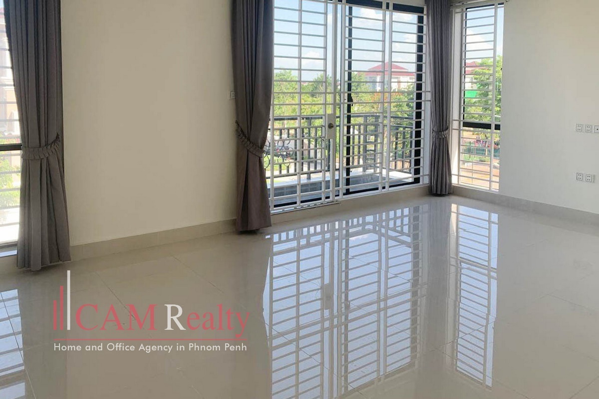 5 bedroom twin villa for rent in Borey Peng Huoth Boeng Snor – Phnom Penh, This property is designed for residence in a comfortable community and security guarding 24 hours and 7 days. Featured a bathroom, and a large kitchen attached to dinning area and living room on the ground floor. Meanwhile, the 1st and 2nd floor feature 2 ensuite bedrooms per floor. It also leaves a fair sized parking space inside the house.