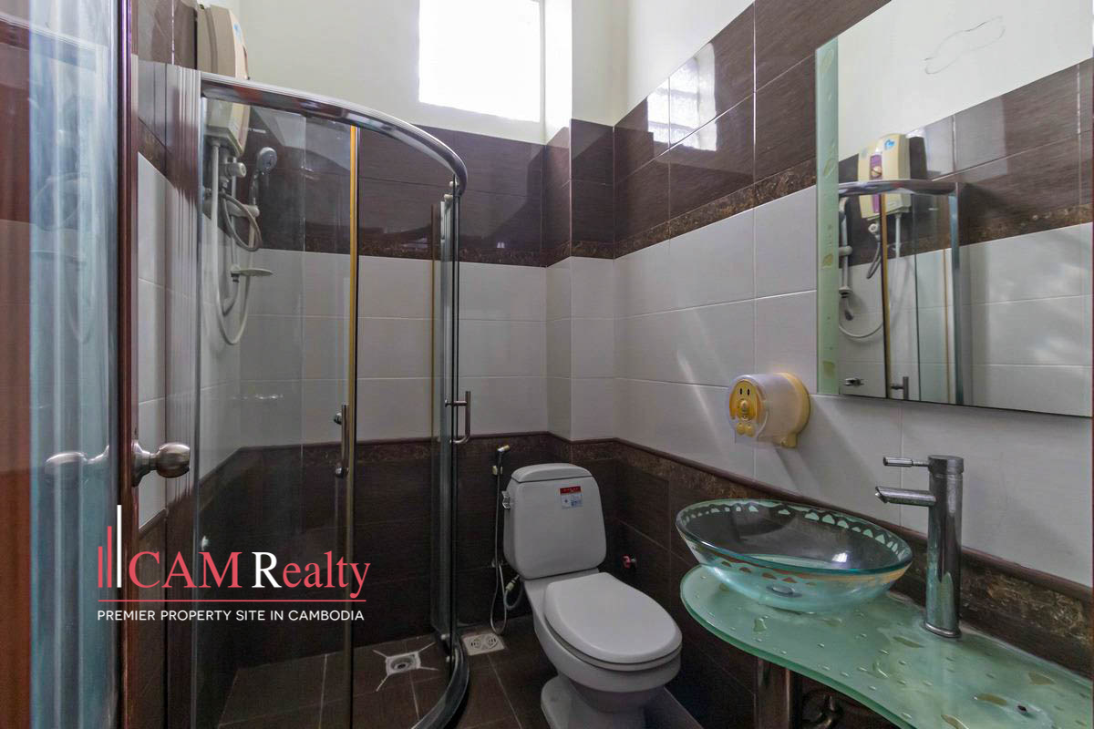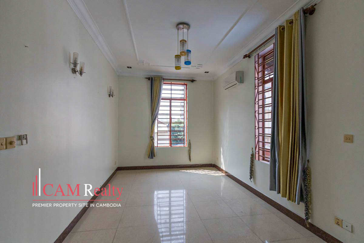 6-bedroom villa available for rent in Phsar Deaum Thkov. Perfect for families seeking comfort and convenience. Comes with 7 bathrooms and a bright living room. Partly furnished and well-maintained over three floors. Offers flexible space for both living and relaxation.