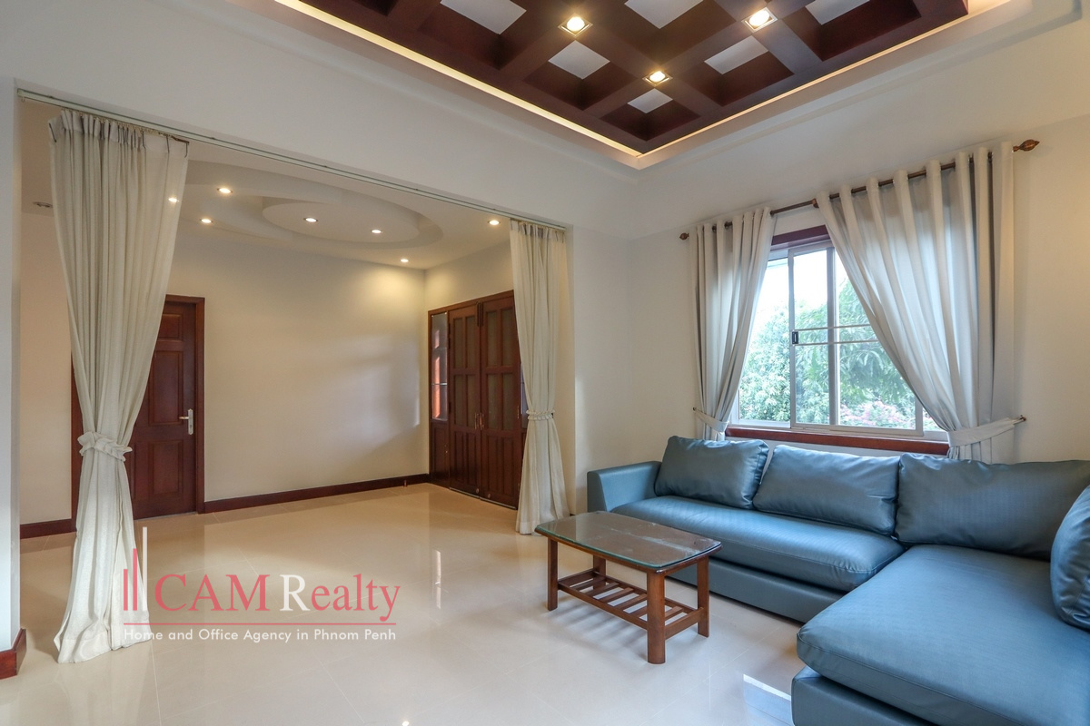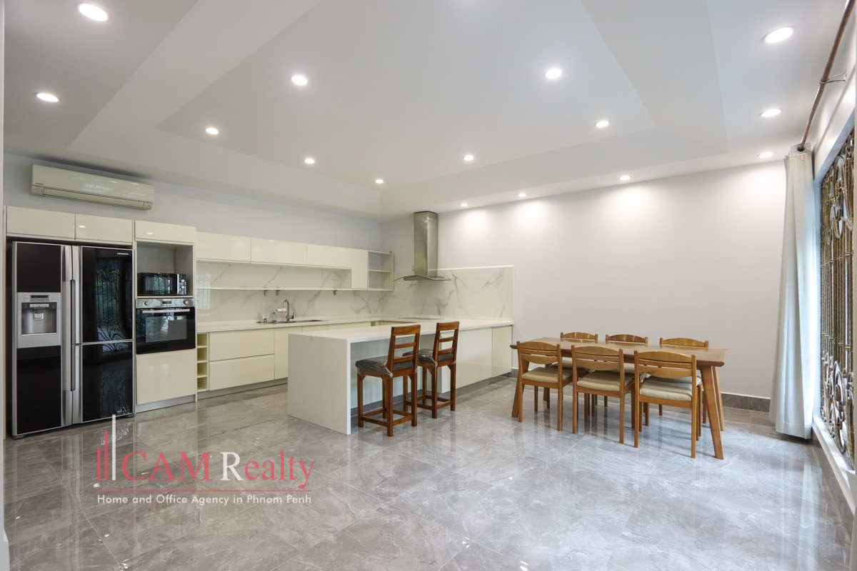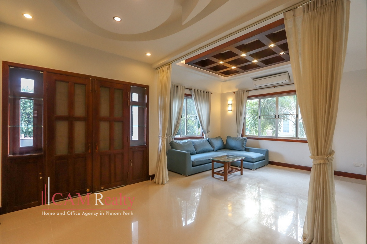 4 Bedroom Villa For Rent in Bassac Garden City. It is fully furnished and very beneficial and comfortable to stay in. The villa is located in a gated community that is very comfortable and has 24/7 security. The villa is surrounded by various businesses, embassies, apartments, condos, supermarkets, and a university.