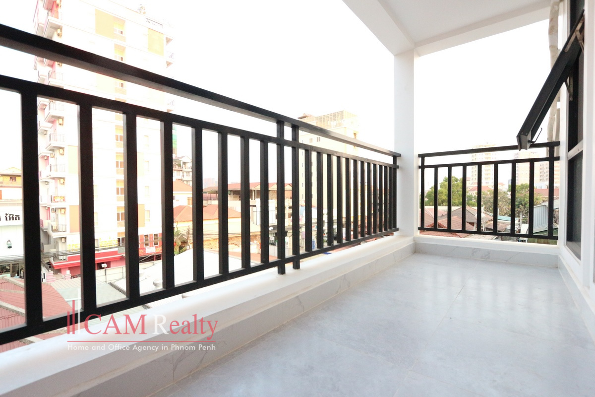 Modern style 1 bedroom apartment for rent in Russian Market area, Phnom Penh. This apartment is located in a clean and safe area, just 5 minutes walking distance to Russian Market, close to ACE (Australian Center for Education), neighboring to mini marts, an organic garden & restaurants.