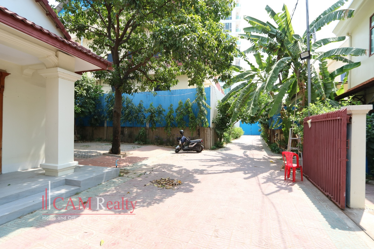 Spacious 3 bedrooms villa for rent in Beong Tumpoun area – Phnom Penh. This villa measures 556 sqm and is inclusive of partly furniture, 3 bedrooms, 6 bathrooms, a hall office on the ground floor, a kitchen, a maid room, and a large living room on the first floor. The villa comes with 6 or 7 parking spots and a green area, a garden, and a quiet place.