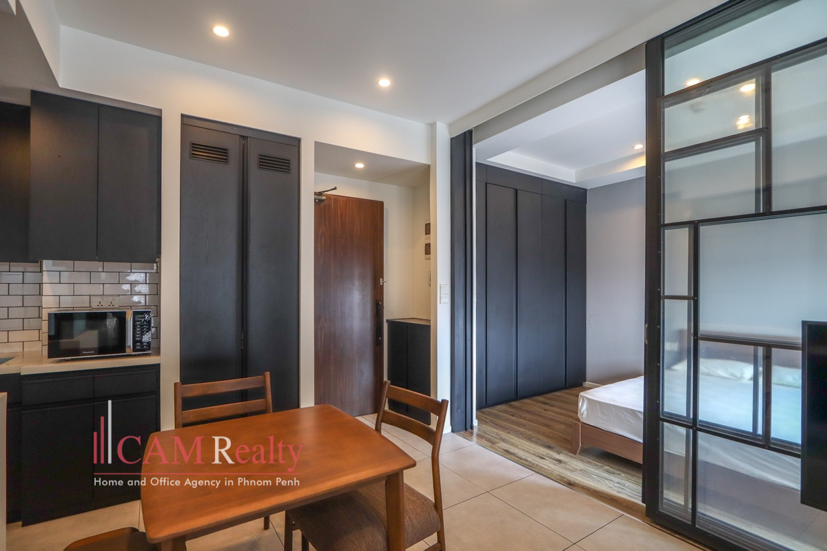 Japanese style 1 bedroom condo on 21st floor for rent in BKK1 – Phnom Penh. This brand new apartment is located in prime area of the Phnom penh City. It’s nearby business center, Japanese restaurants, western restaurants, supermarket, International school, NGO, brand coffee shop. This apartment attached with beautiful swimming pool and gym.