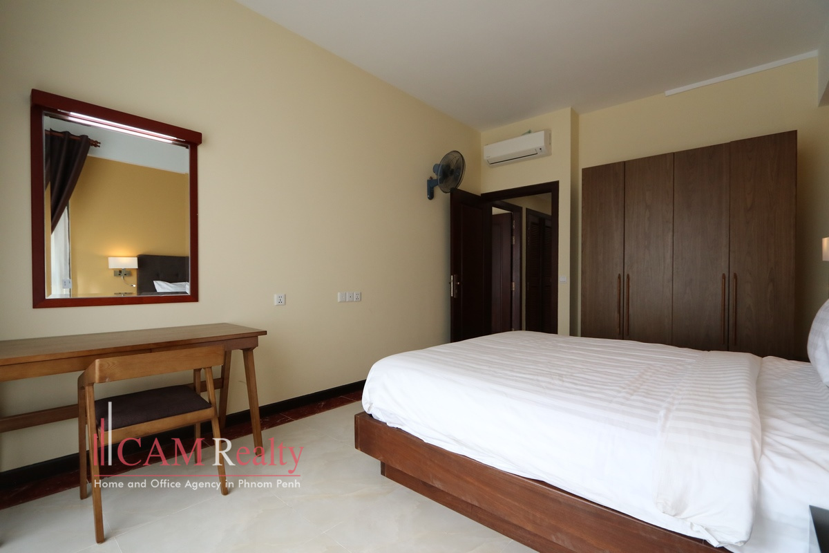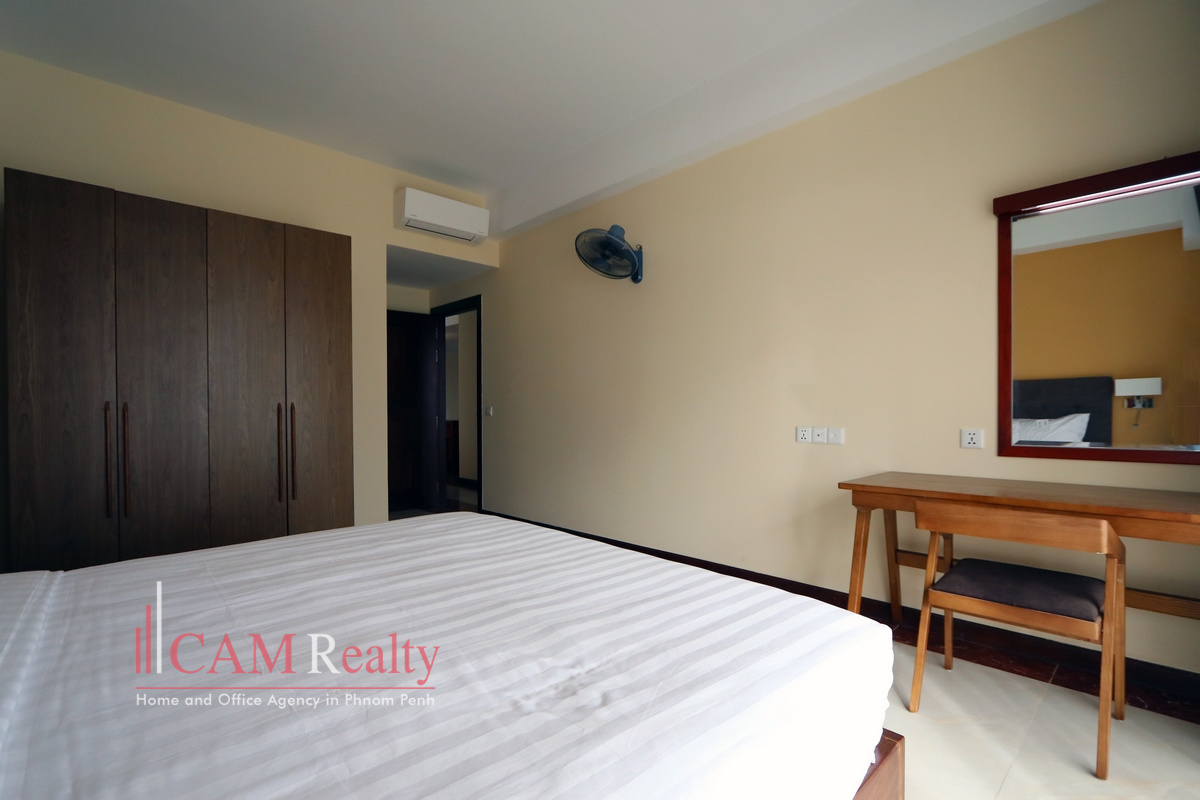 2 bedroom apartment for rent in Chroy Changvar area – Phnom Penh. This apartment is located next to Tonle Sap river that is 1.4km from Chroy Changvar roundabout or take 4 minutes’ drive. There area many local restaurants and entertaining places at evening time within walkable distance. It is 15 minutes’ drive from BKK1.