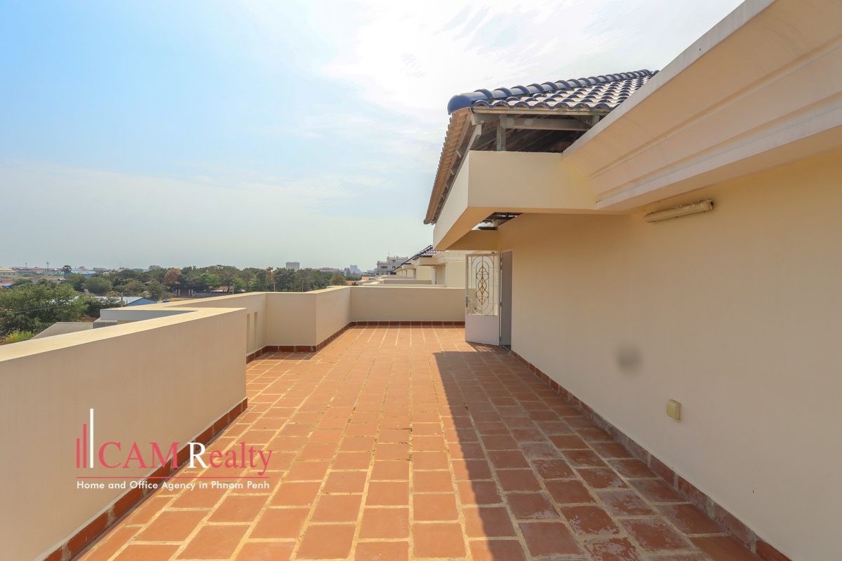 5 Bedrooms King Villa For Sale In Borey Blue Diamond – Phnom Penh., This villa offers exceptional privacy with a spacious lot, a seamless open-plan ground floor, and a king-size bedroom with a private balcony on the first floor. The second floor features four bedrooms, while the third floor boasts a customizable rooftop room with a terrace. Offers premium amenities, including a swimming pool, fitness center, jogging track, and playgrounds, along with 24/7 security, ensuring a safe and luxurious living experience. The King Villa is the ideal family home in Phnom Penh, blending comfort, privacy, and modern convenience.