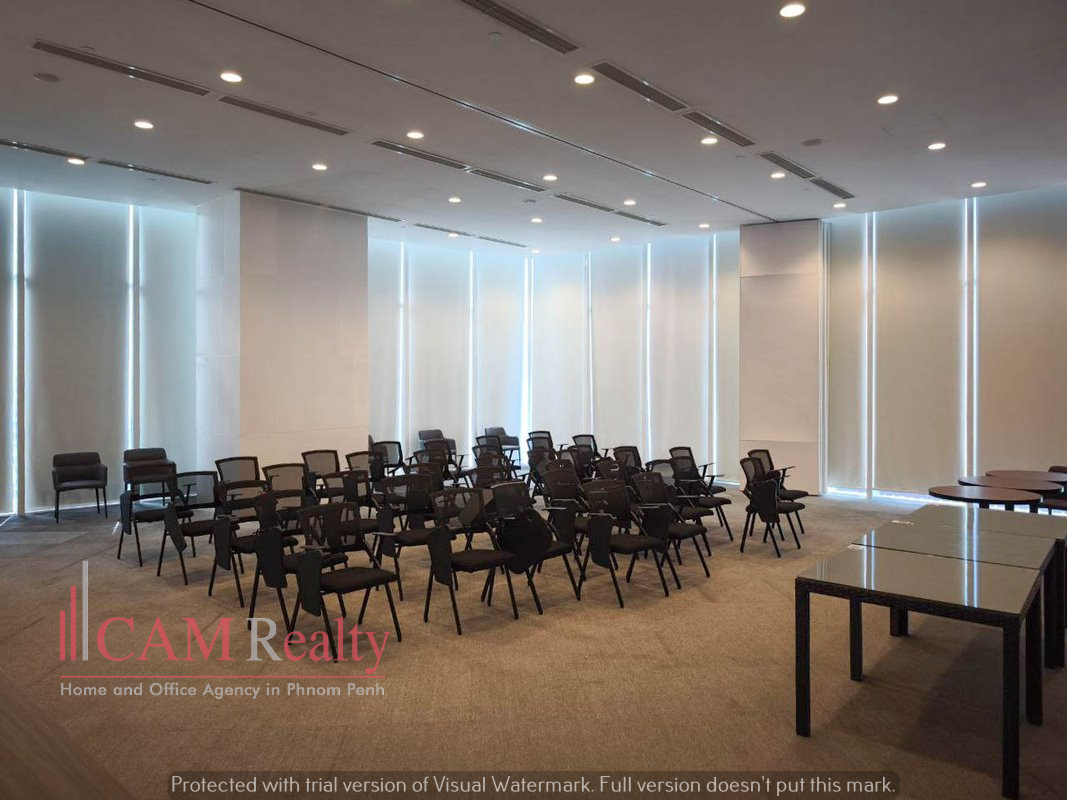 Offices are situated on the 11th to 36th floors of the complex, indicating potentially impressive city views and a desirable elevated position within Phnom Penh. This higher floor location offers a sense of prestige and separation from ground-level bustle while still benefiting from the convenience of a central location.