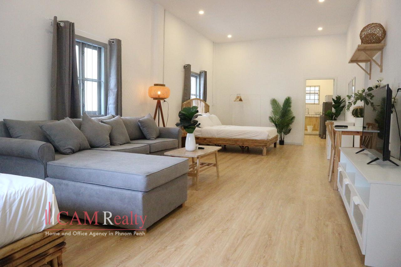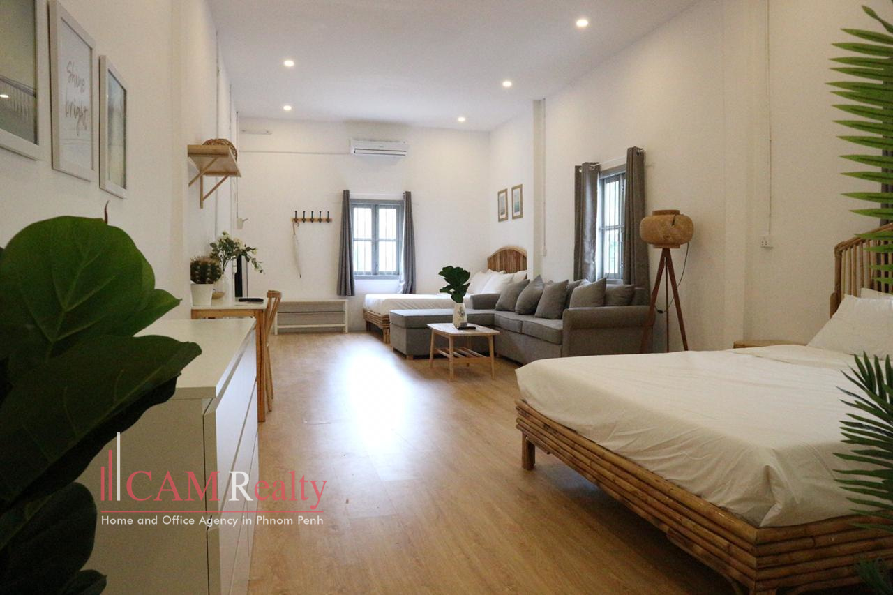 Modern style studio renovated apartment for rent in BKK2 area – Phnom Penh. This apartment is located in the great location of BKK2, within a walking distance to the center of BKK1 area & surrounded by super markets, minimarts, restaurants, international schools, etc.