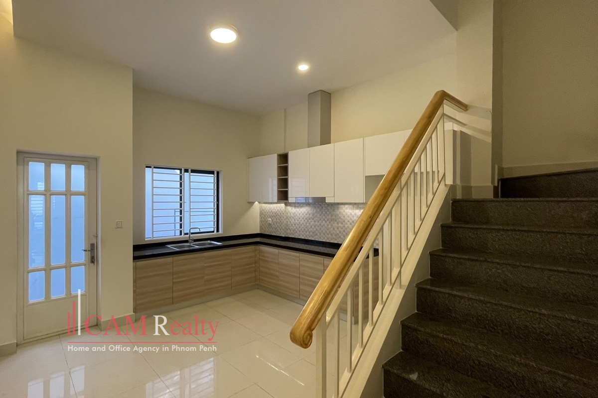 This shophouse is located inside an enormous eco-friendly residential community that is inhabited by both high-income locals and expats. It offers you a chance to start a business to offer service to a great number of residents and generate income from potential customers from both inside and outside of the gated community. It is conveniently distanced from essential establishments, including Cho Ray Phnom Penh Hospital, CIA First, Southbridge International School, PH Euro Park, and Platinum Sports Center.