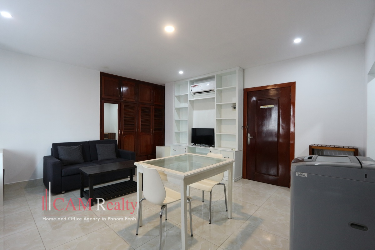 Modern style studio apartment for rent, surrounded by quiet, nice and safe environment. It locates in the the middle of city which close to business center, market, mini mart, modern coffee shops, pubs, international school, bus terminal, NGOs..etc and just 7 minutes to go to Russian market area, 15 minutes to go to BKK1 area by tuktuk.