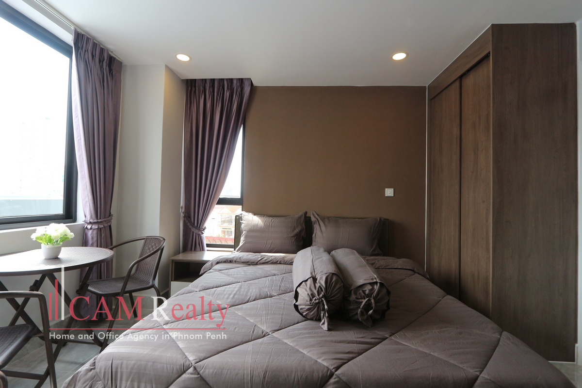 Modern style studio room for rent in Russian market area (Tuol Tompoung), Phnom Penh. This apartment is located around 5 minutes walking distance to Russian market.