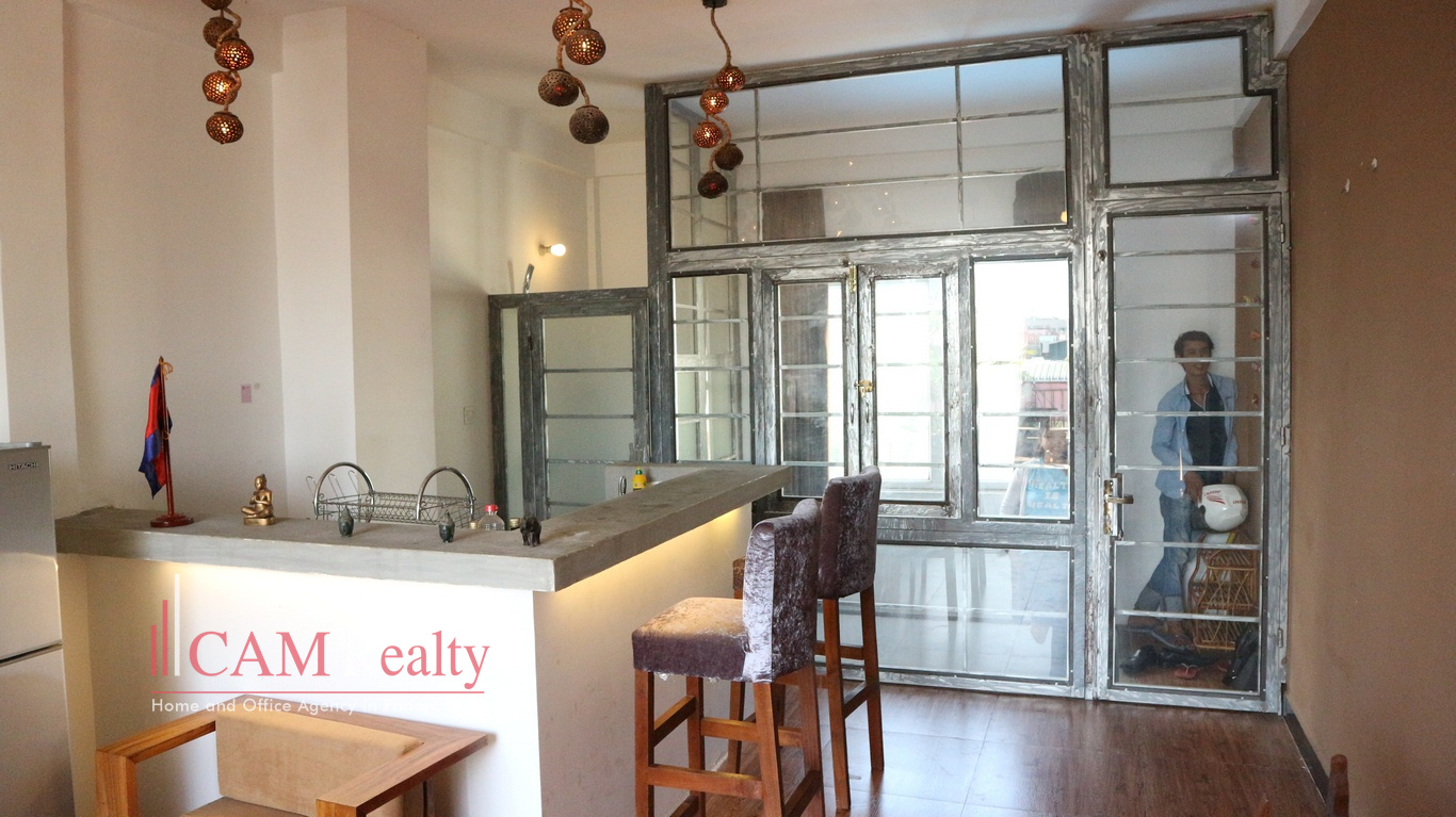 Russian Market area| Nice duplex 1 bedroom renovated town-house available for rent. It locates on in safe area east of Russian market, covered by modern coffee shop, western restaurant, international school…Etc. You will spend 12 minutes by tuktuk from Independence Monument and 17 minutes from Riverside area.
