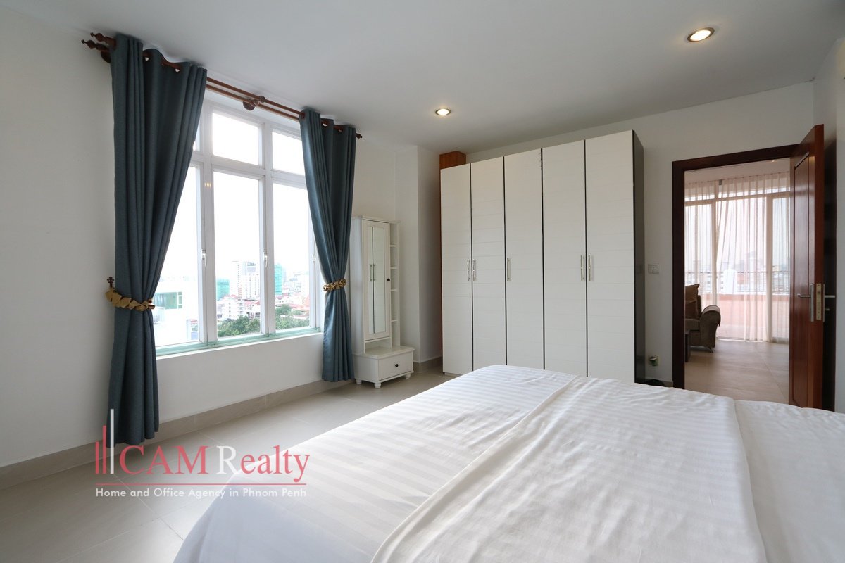1 bedroom penthouse serviced apartment for rent in Russian Market – Phnom Penh. This apartment is offered fully furnished with access to a swimming pool and gym. It also comes with a big terrace.